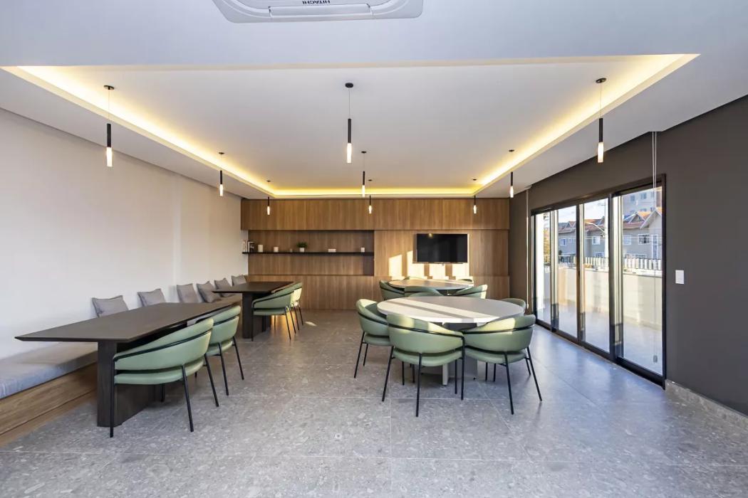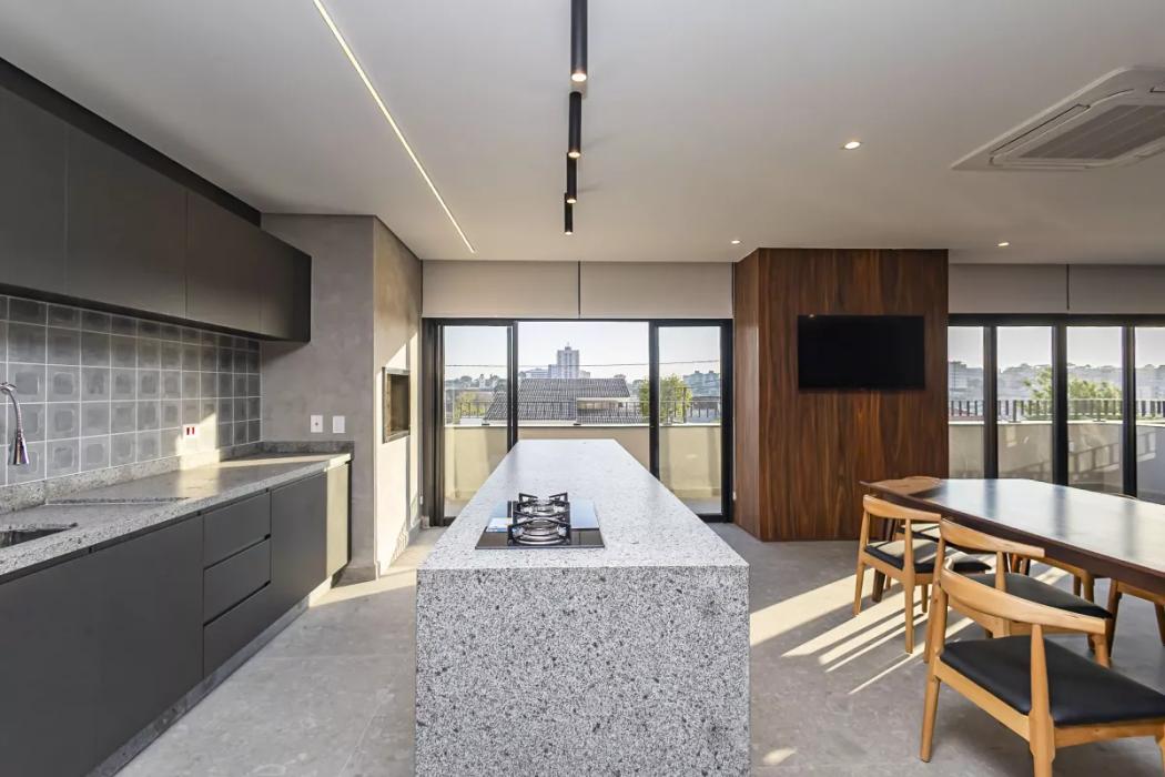 - Living integrado à cozinha funcional