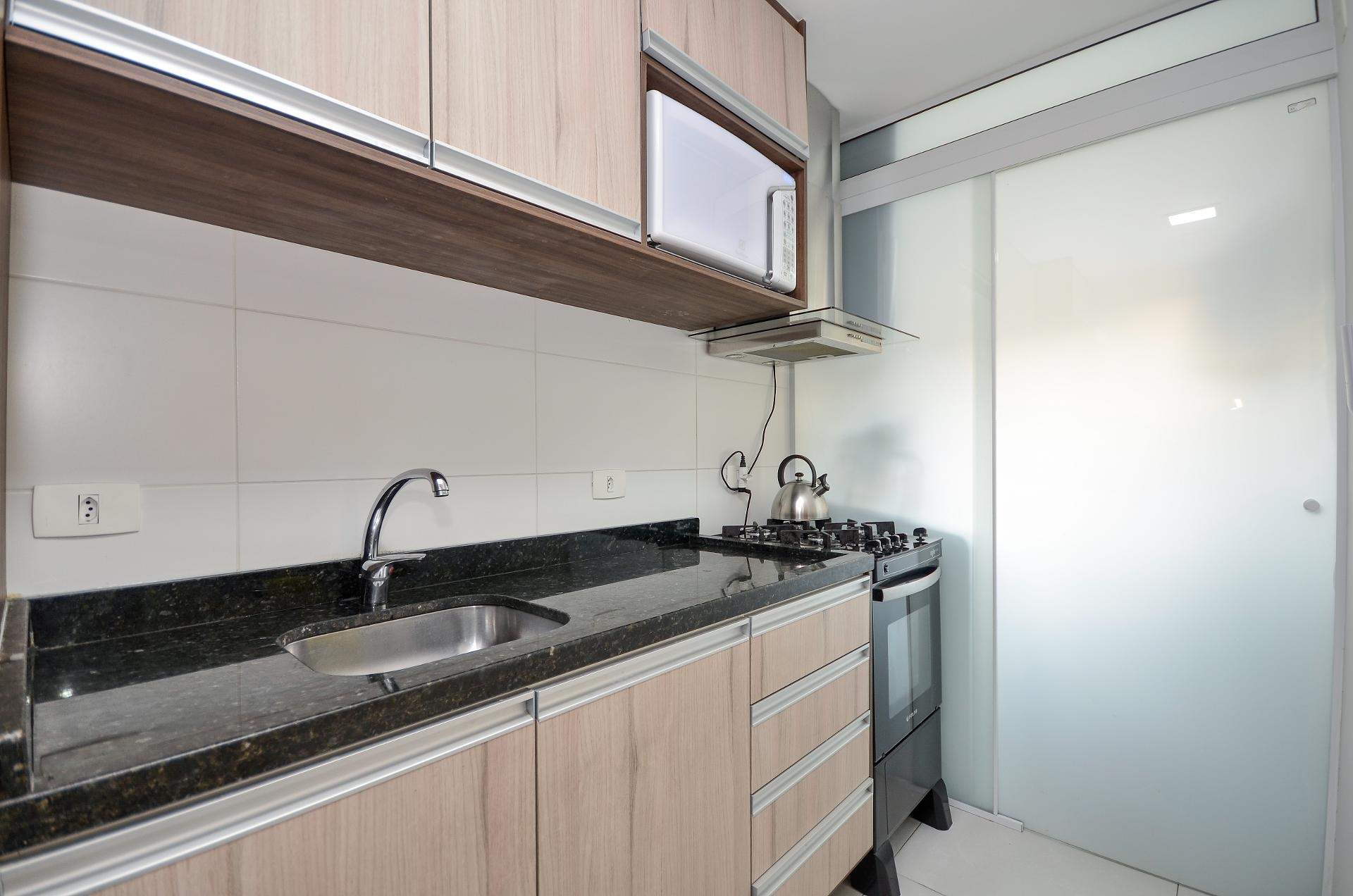 Localizado no primeiro andar, um diferencial deste condomínio é que os apartamentos desse pavimento possuem sacada, trazendo mais ventilação e iluminação natural ao ambiente.