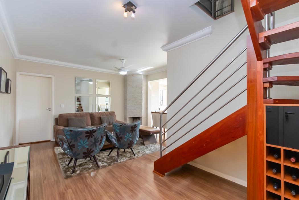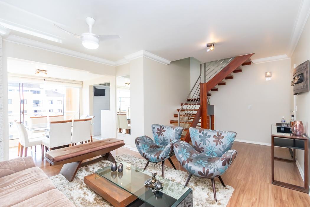 Cobertura duplex ensolarada e com uma bela vista do Ecoville. Com uma planta funcional e espaçosa, este imóvel é ideal para quem busca viver com muito conforto e praticidade. Além dos 3 quartos (sendo 1 suíte), o apartamento possui também um ambiente para home office e uma deliciosa área gourmet com churrasqueira, ambos no pavimento superior. Para arrematar, o condomínio conta com uma infraestrutura completa de lazer.