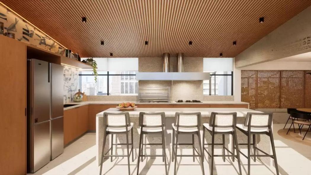 - Cozinha com ilha em conceito aberto