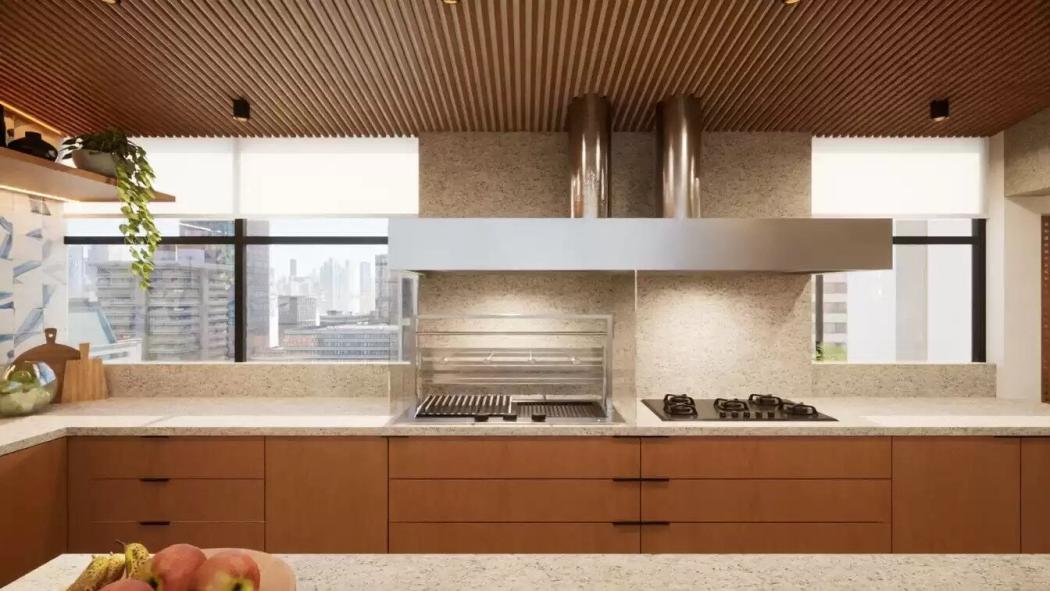 - Área gourmet com churrasqueira a carvão com espaço externo integrado