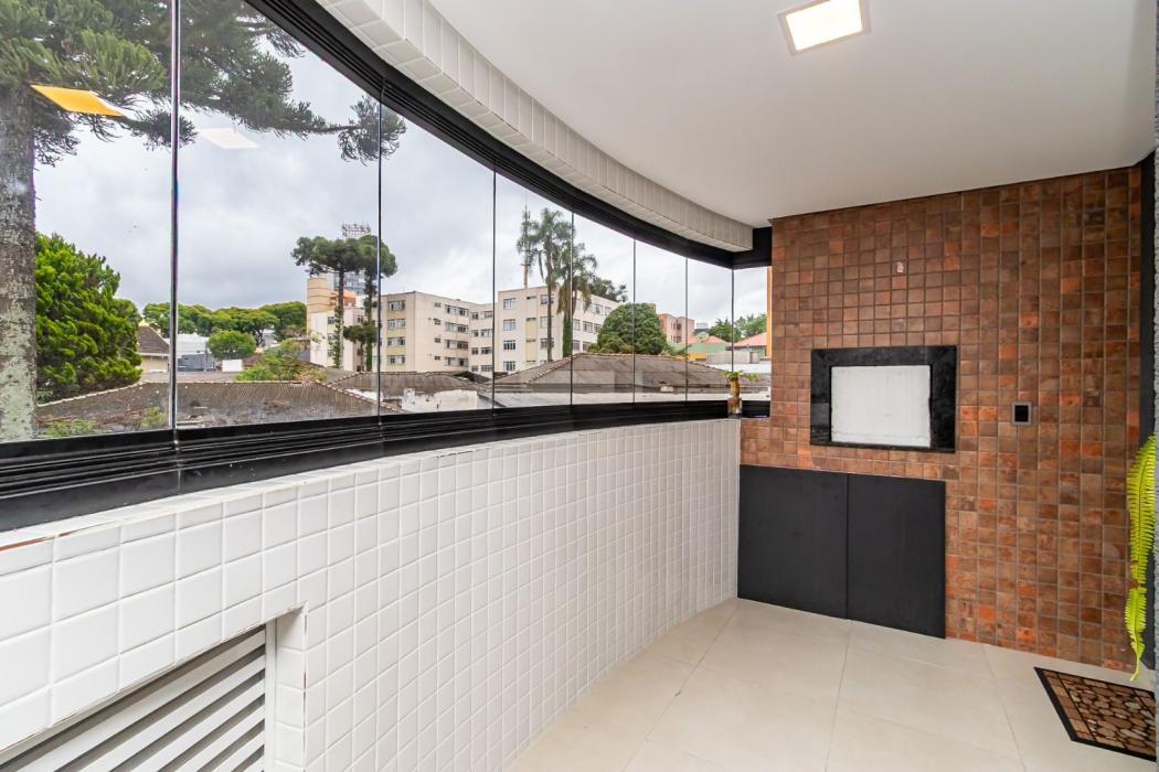 - Sacada com churrasqueira e fechamento em vidro