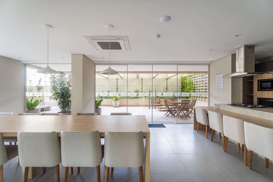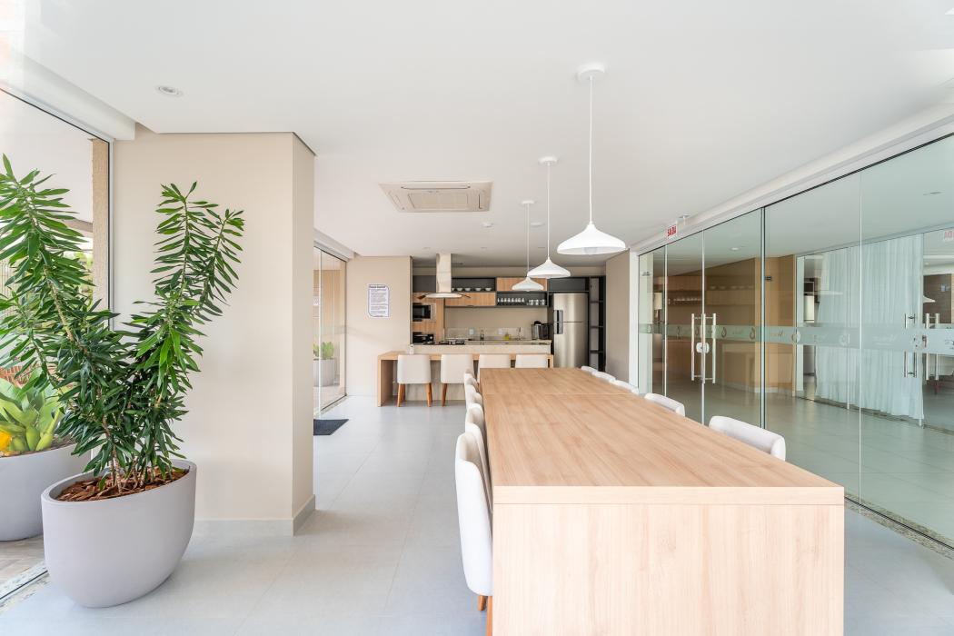 O imóvel conta com 02 dormitórios, sendo uma suíte, cozinha equipada com móveis planejados, sacada com churrasqueira e uma vaga de garagem coberta. O prédio oferece uma infraestrutura completa para o seu lazer e bem-estar, incluindo piscina com borda infinita, piscina infantil, academia, sala de jogos, spa, sauna, espaço gourmet, brinquedoteca, playground, salão de festas, bicicletário e pet place.