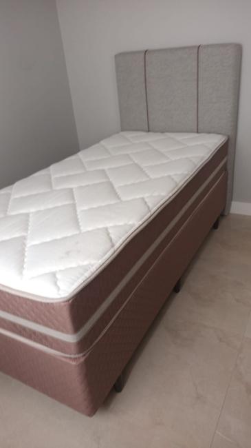Quarto Secundário: cama box de solteiro com painel de cabeceira, colchão, guarda-roupas e Cortinas (tecido).