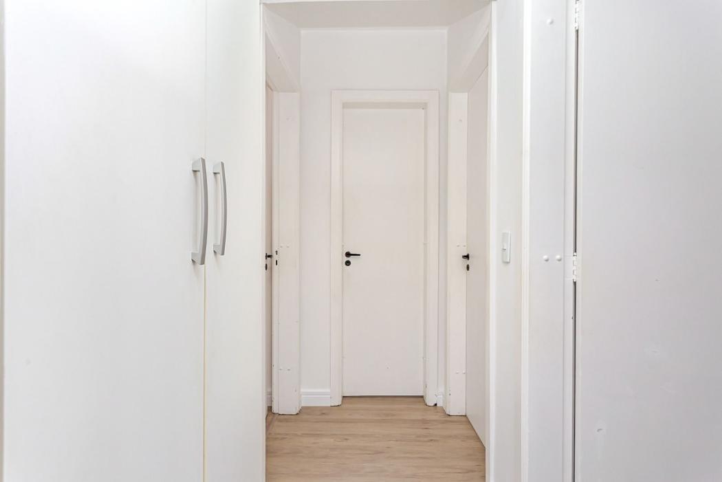 Na área íntima, são 3 dormitórios, sendo 1 suíte e 1 quarto com sacada, todos com armários planejados. Dois banheiros, sendo um deles equipado com banheira de hidromassagem.
