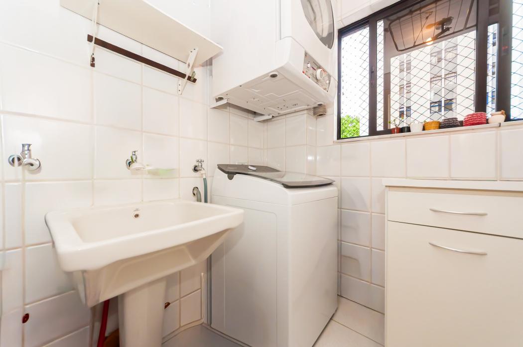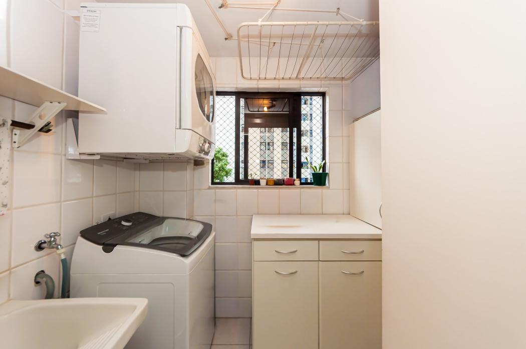 A copa-cozinha é funcional e totalmente mobiliada, assim como a área de serviço, oferecendo praticidade no dia a dia.