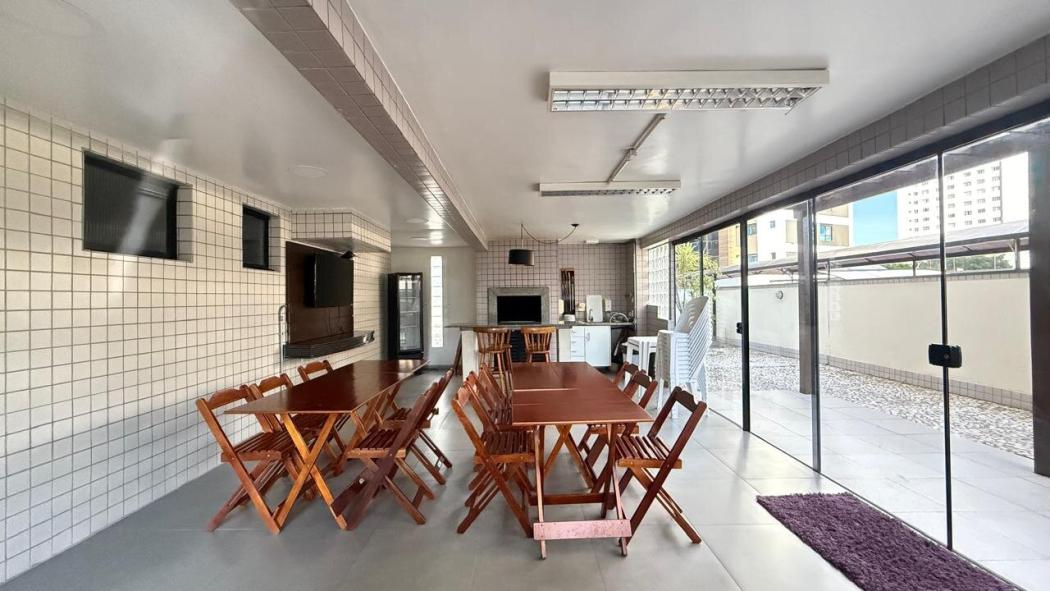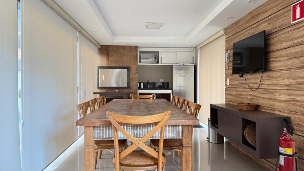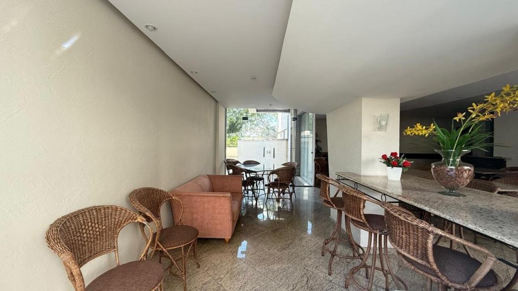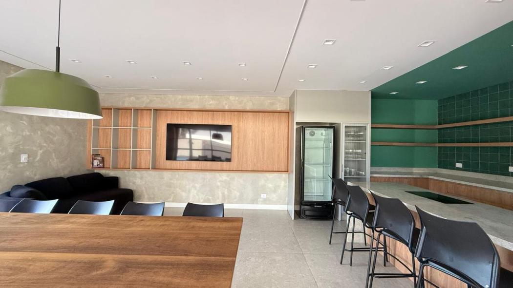 Brinquedoteca, Ginásio de esportes, churrasqueira condominial, espaço gourmet, quadra esportiva, academia mais SALA AUXILIAR, salão de festas, salão de jogos, sauna, playground, paisaismo, portaria 24 horas, guarita, elevadores e circuito interno de TV.
