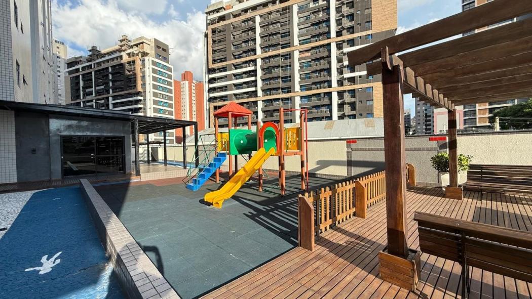 Condomínio Portal do Lago Club – Torre Araruama, a maior torre do condomínio, este apartamento oferece mais amplitude, melhor distribuição de planta e excelente incidência solar, em um dos condomínios clube mais tradicionais do bairro Bigorrilho.