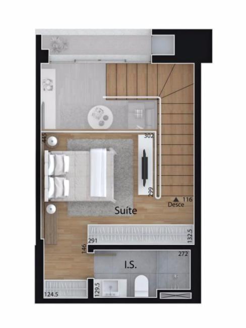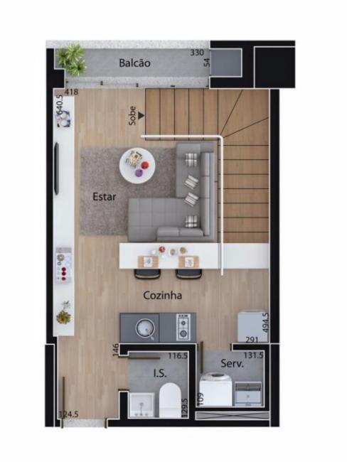 planta deste duplex no Mid Home foi perfeita na sua concepção: valoriza o tamanho da sala e cozinha na parte inferior, enquanto na superior enaltece e enobrece a suíte com grandeza. Tudo isso para trazer mais conforto e bem-estar para a sua rotina. Aqui você vai ter espaço de sobra para viver cada dia ao máximo!