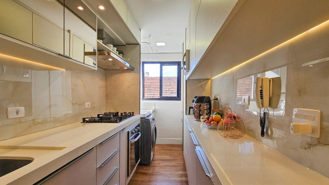 Imóvel face oeste. Com ampla sacada com churrasqueira. Sacada fechada com janela estilo reiki. Mobília planejada em todo o imóvel. Dois banheiros amplos.