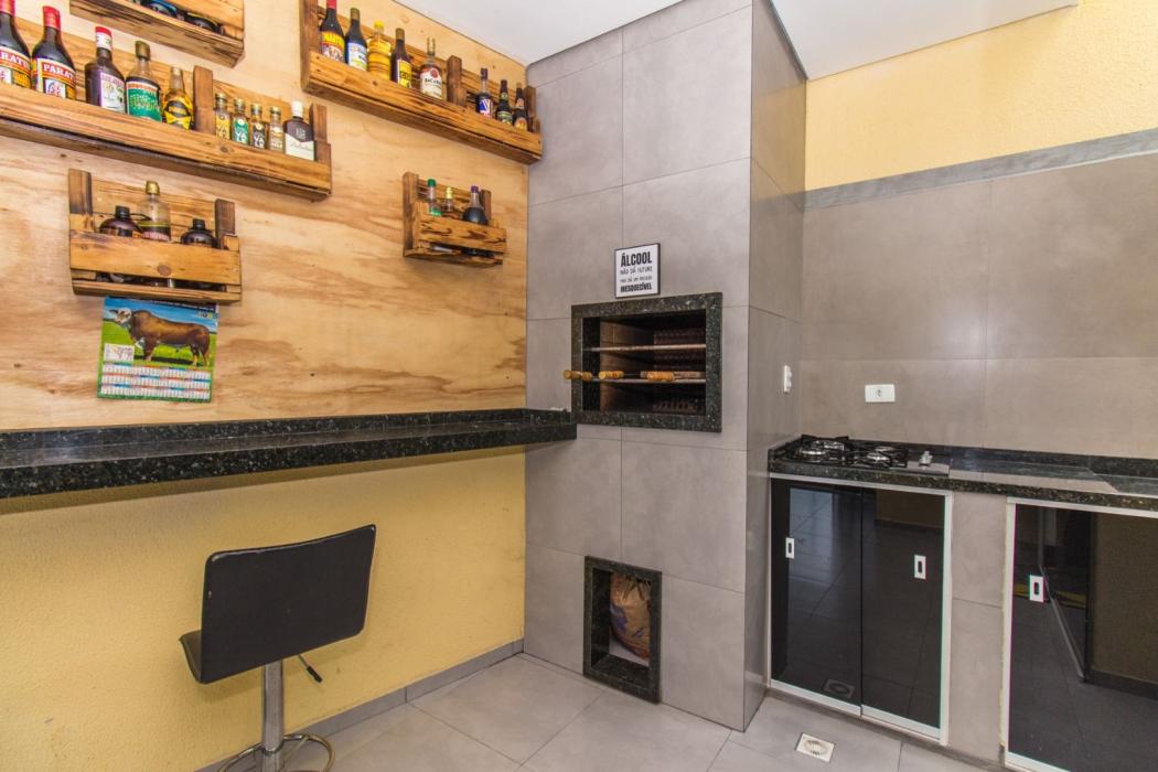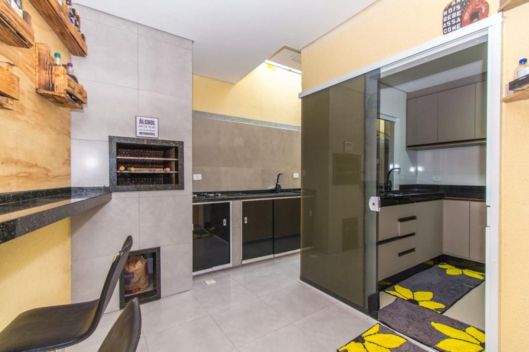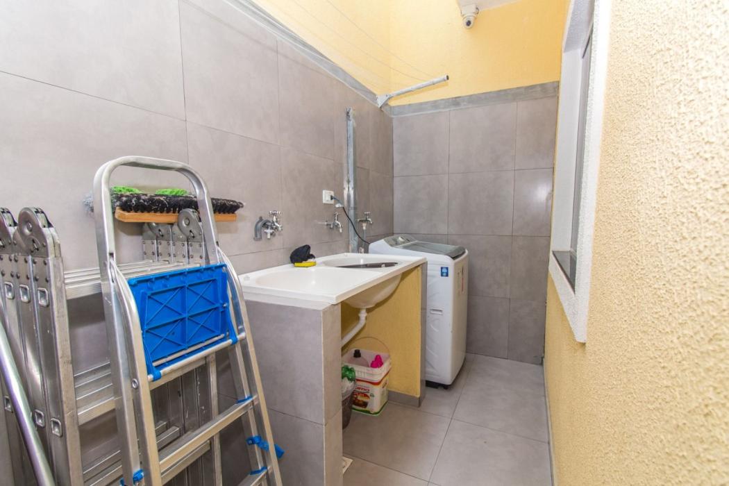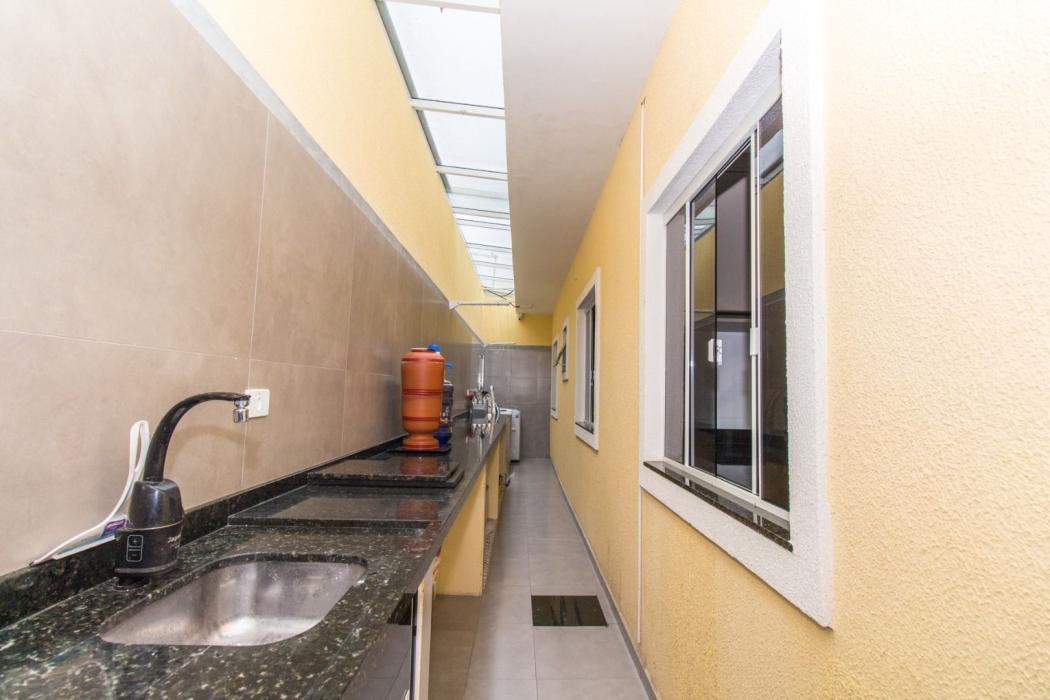 Área de serviço externa e espaço de churrasqueira com lavado individual.