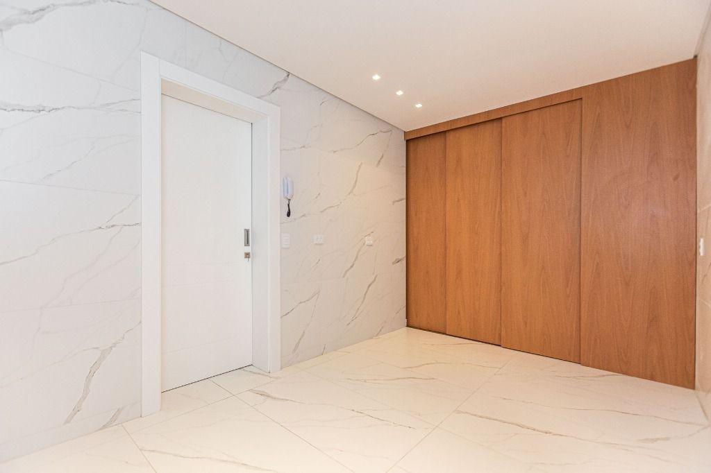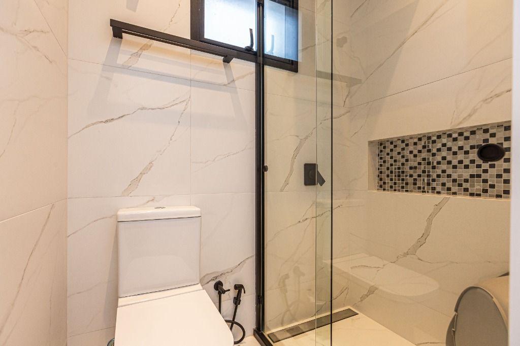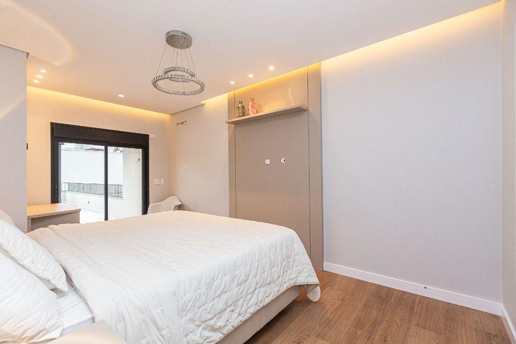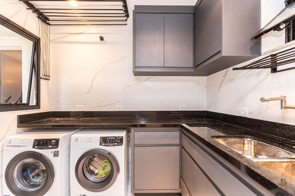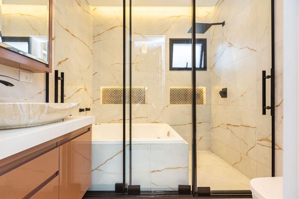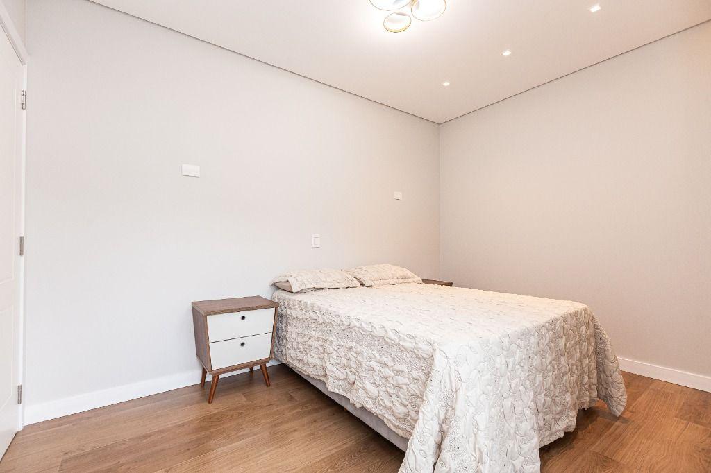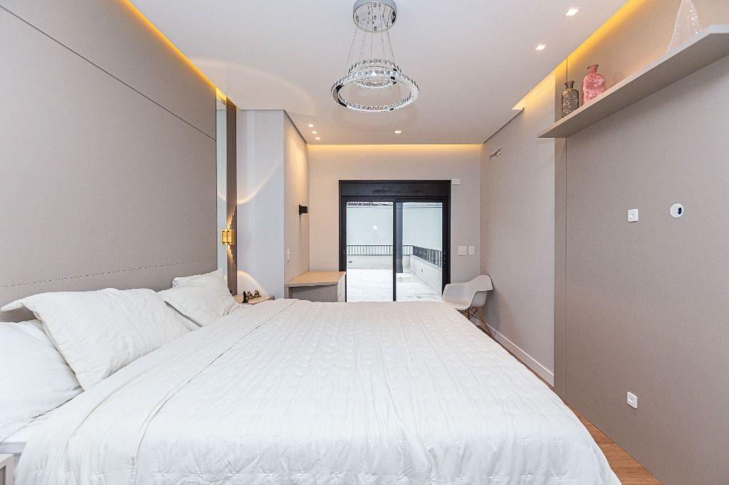 São 4 quartos, sendo uma suíte no andar inferior, uma suíte máster e mais uma Demi-suíte no andar superior, sendo a máster, com closet e hidro, que se abre para uma linda varanda, super ensolarada, todos com armários e piso aquecido nos banheiros e quartos.