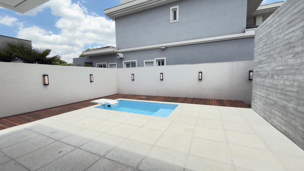 Área externa com piscina e conforto absolutoA área externa foi pensada para o lazer com elegância. A piscina na face norte recebe sol praticamente o dia inteiro e já possui preparação para aquecimento. Há ainda um banheiro externo exclusivo, com acesso independente, ideal para receber convidados mantendo a casa organizada e funcional.