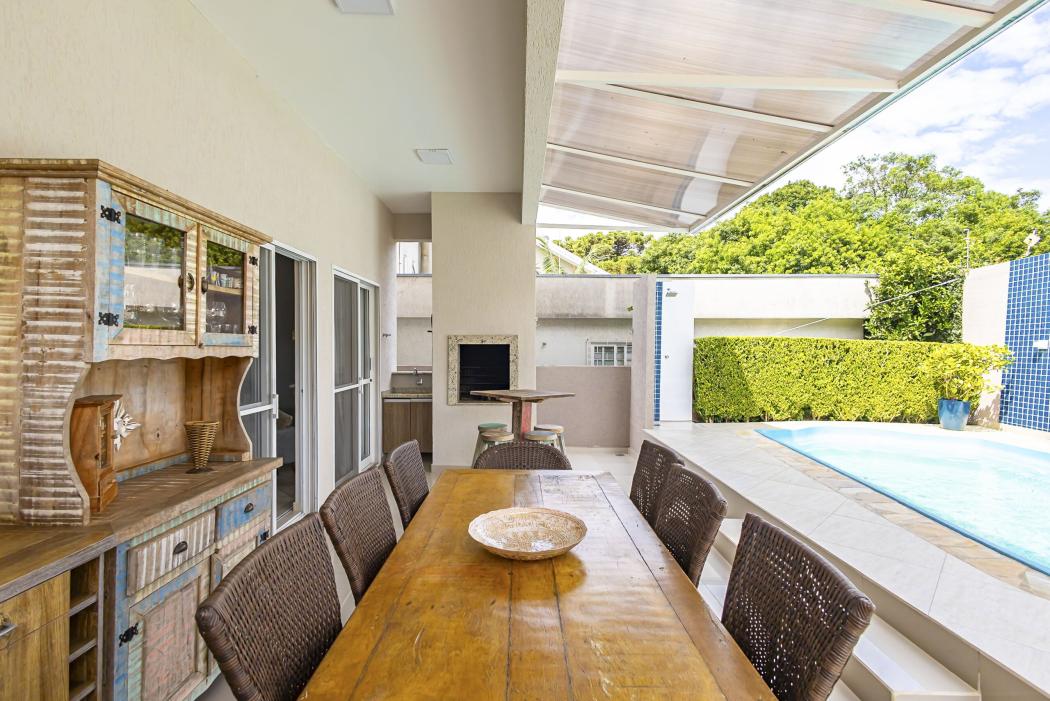 Bela casa em condomínio fechado com deliciosa área externa com piscina e churrasqueira e muito sol o dia todo. Os ambientes são amplos, arejados e funcionais. Recentemente a casa passou por uma revitalização, onde foi refeita toda a pintura interna e externa, revisão da parte elétrica e troca de todo o piso do andar superior. Todas as esquadrias são de alumínio e com tela anti mosquito. Os 4 quartos contam com ar condicionado quente/frio trazendo conforto em todas as estações do ano. O condomínio é de excelente padrão, muito tranquilo e ainda conta com um bosque privativo!