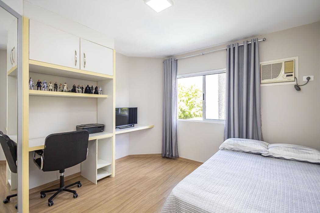 - Suíte master com armários planejados, sacada e closet com ventilação natural