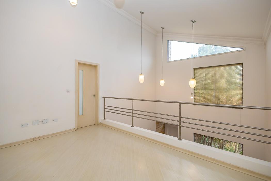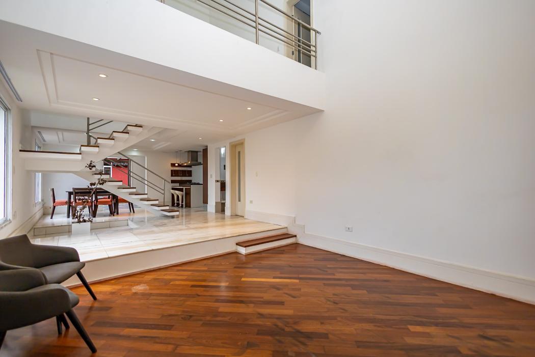 - Sala de estar com pé direito duplo e lareira