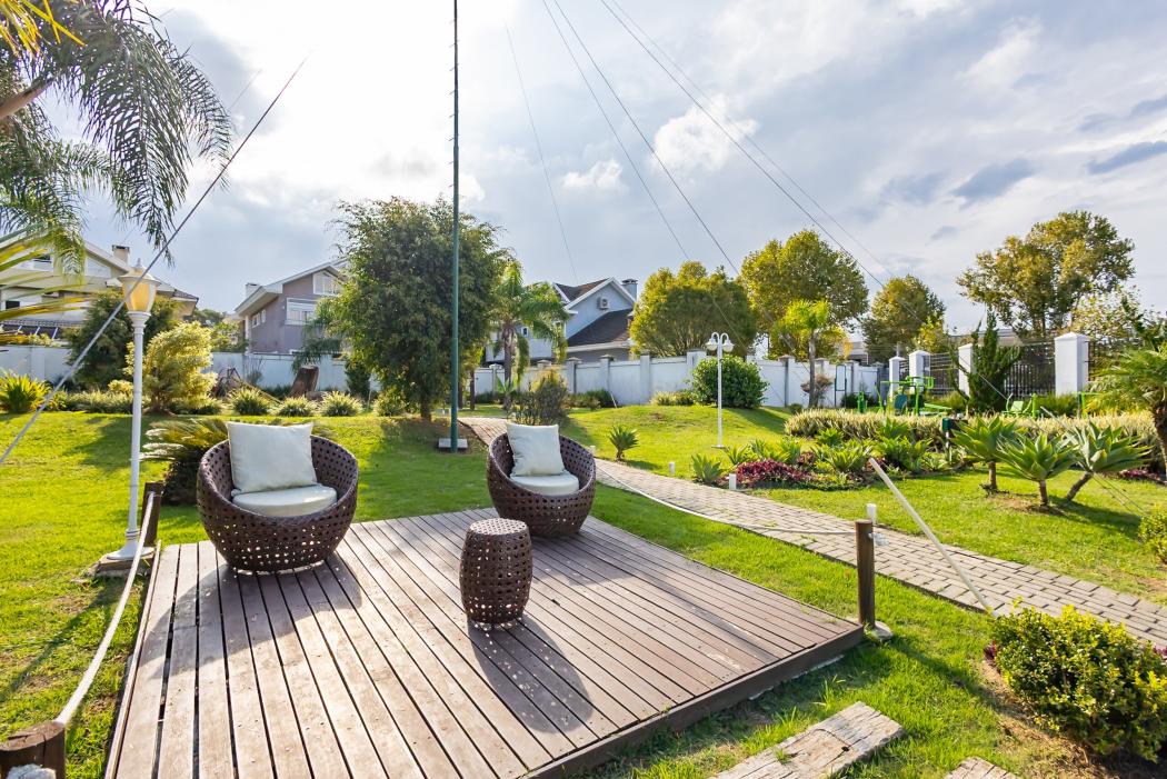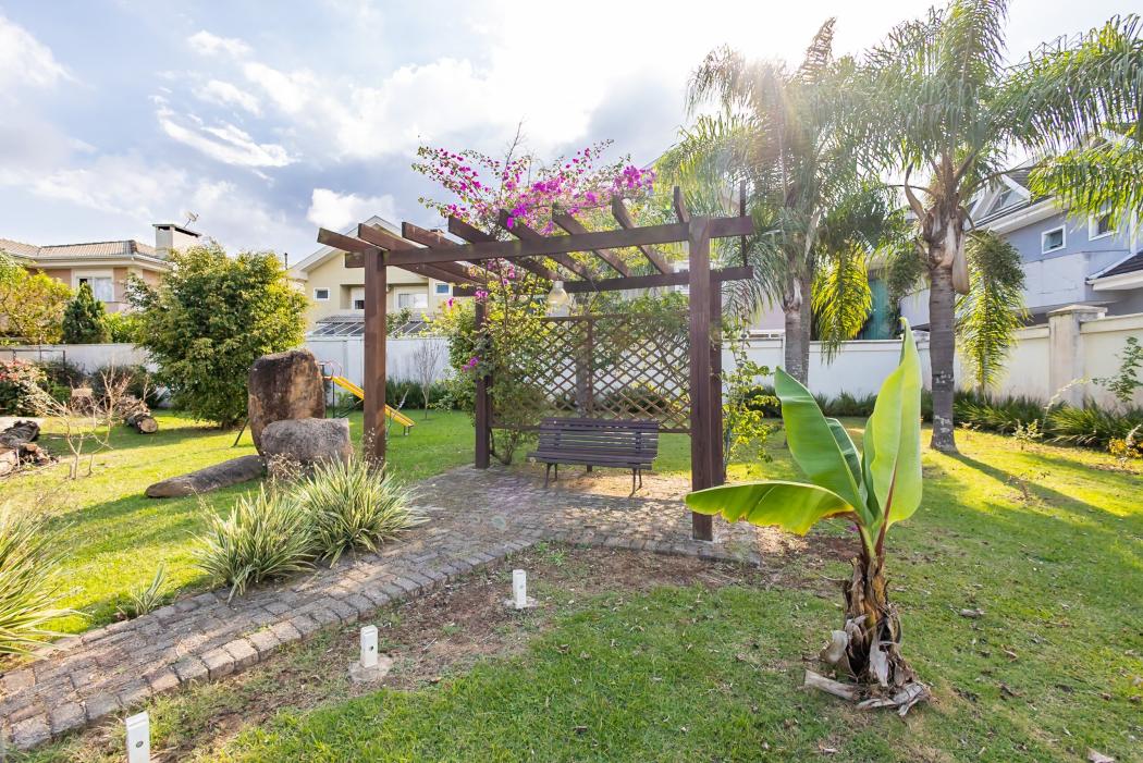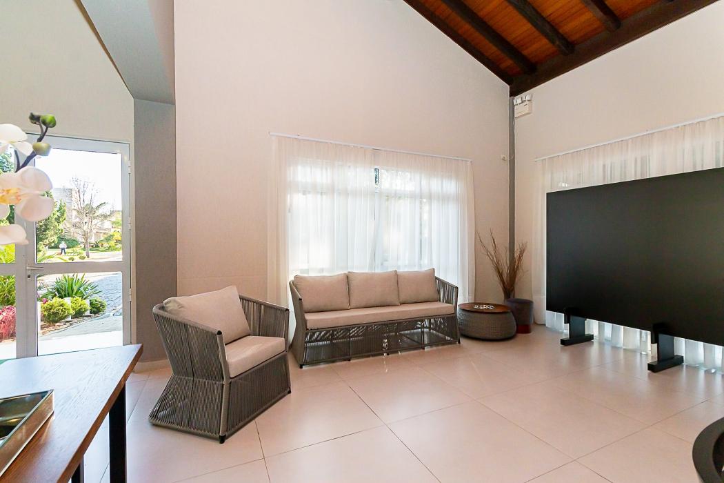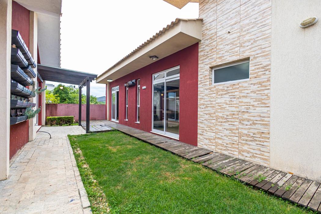 Como diferencial, o imóvel possui um anexo independente, com duas suítes adicionais e uma sala, além de depósito e oficina. Esse espaço é conectado à casa principal por um deck com pergolado, criando uma transição charmosa entre os ambientes e ampliando as possibilidades de uso, seja para hóspedes, home office ou lazer.