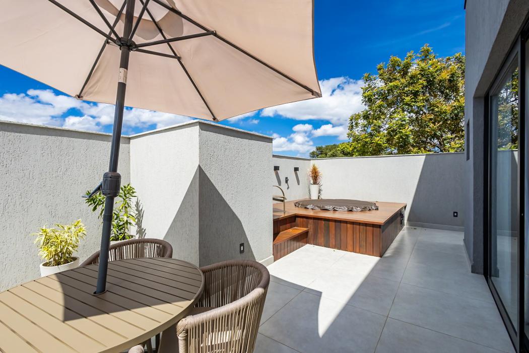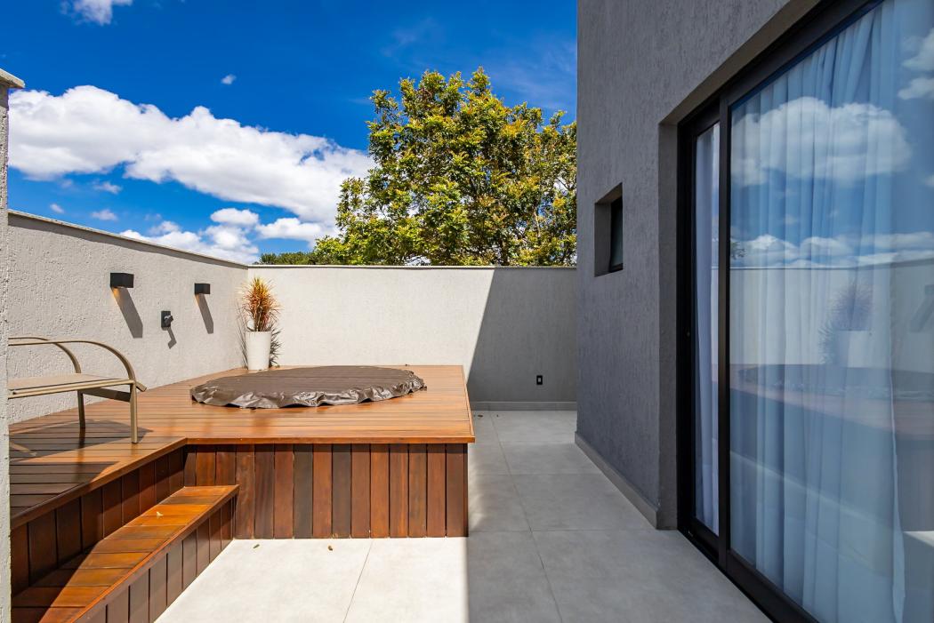 - Ático externo com deck de madeira, iluminação de led, mesa 4 cadeiras aluminio, paisagismo e SPA com linda vista