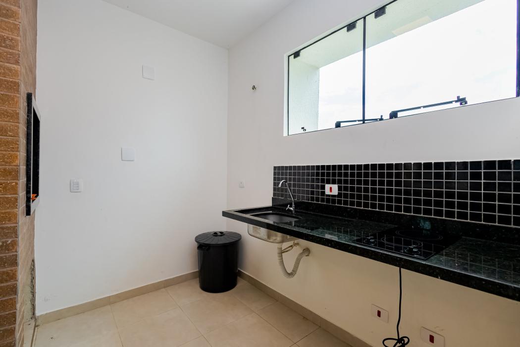 - Cozinha com infraestrutura para coifa, pia dupla, mármores e metais instalados