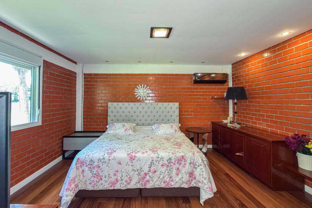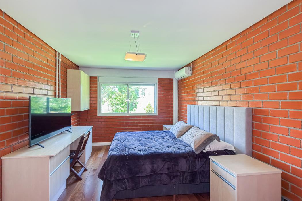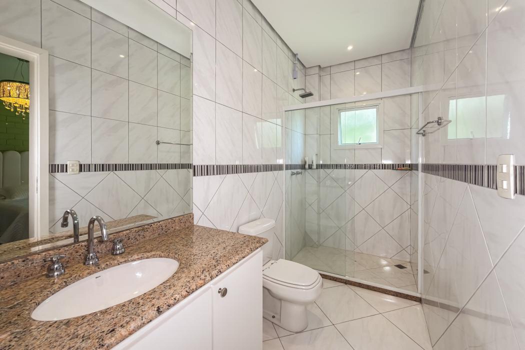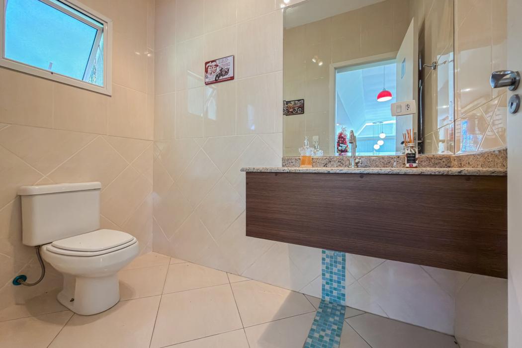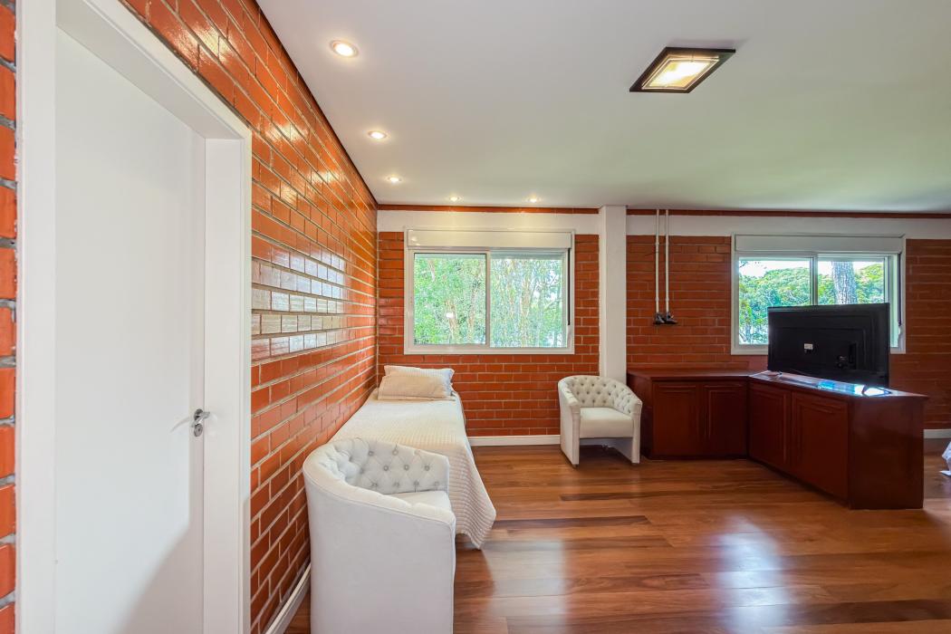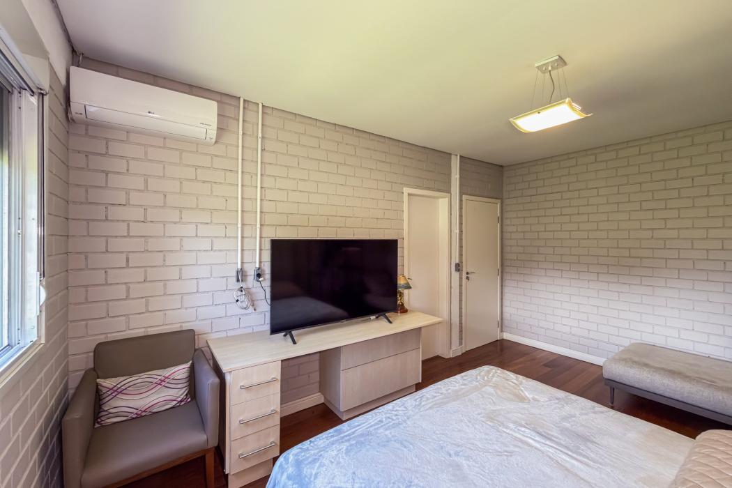 Além das suítes, a casa conta ainda com um dormitório amplo equipado com quatro beliches, ideal para acomodar hóspedes, crianças ou grupos, mantendo organização e funcionalidade sem comprometer o padrão do imóvel.