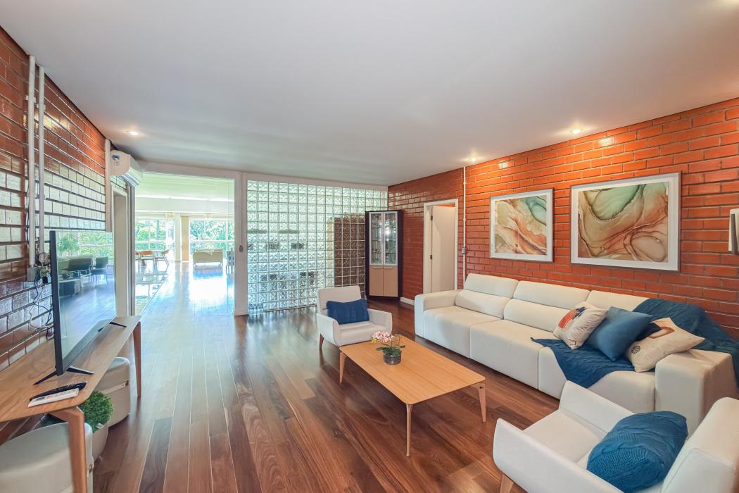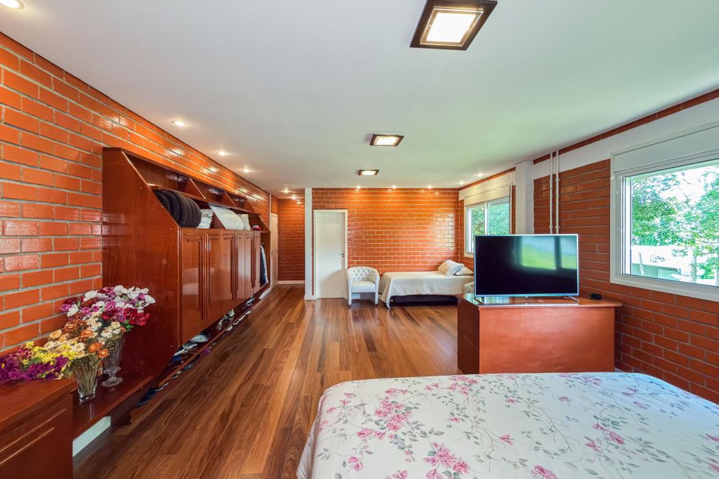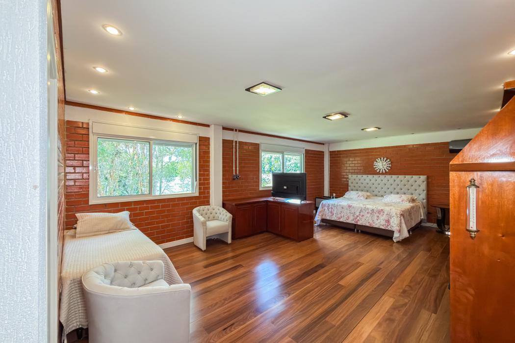 A residência principal possui mais de 700 m² de área construída, com padrão construtivo robusto e excelente estado de conservação. São quatro suítes, incluindo uma suíte master, todas localizadas no piso superior, garantindo privacidade e conforto.