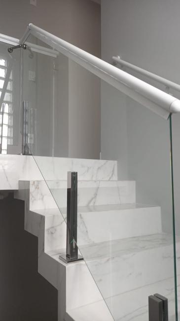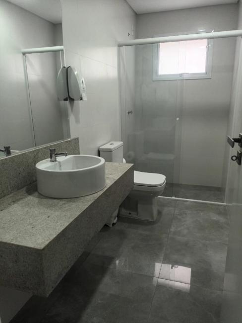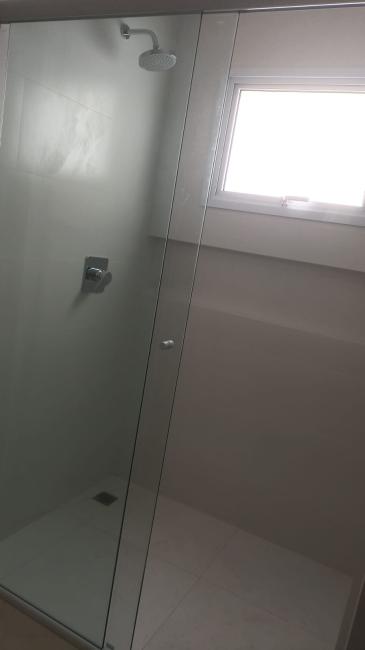Banheiros: Armário com bancada de granito, box em vidro temperado, espelho na área do lavatório, ducha aquecimento a gás.