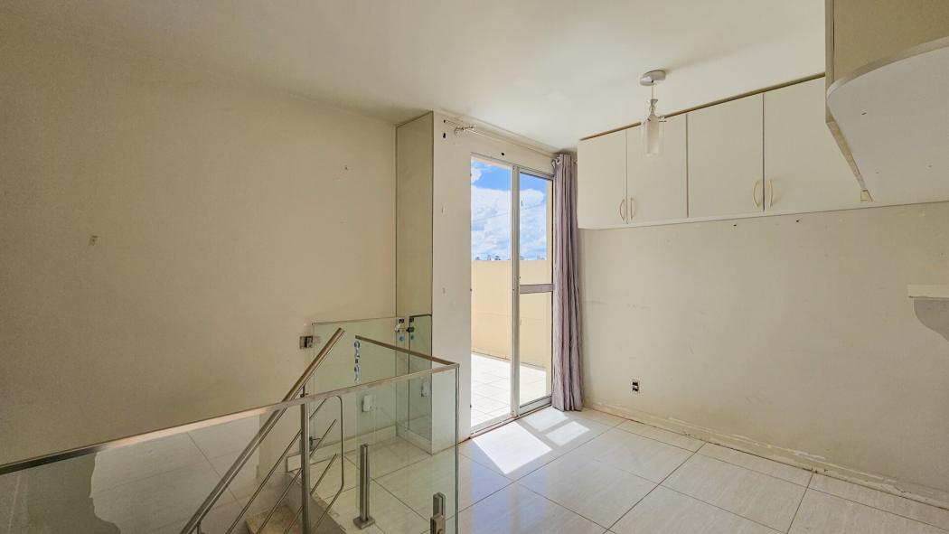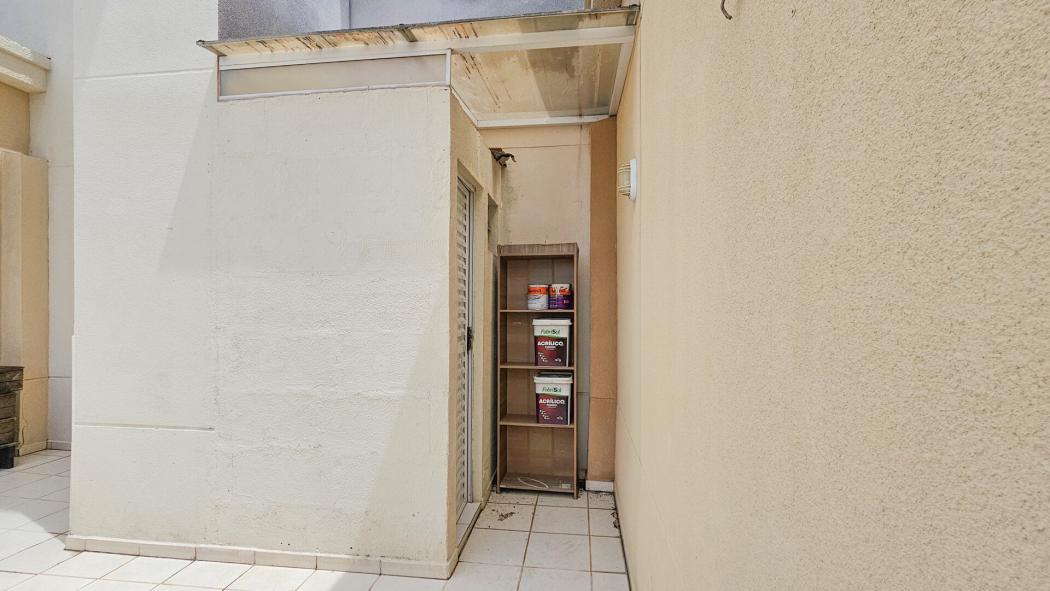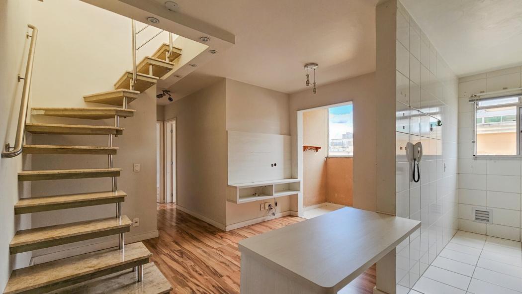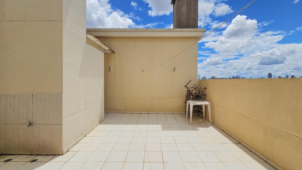 Apartamento com dois pavimentos, sendo o inferior apartamento tipo e o superior ático com terraço, lavabo e área de serviço coberta.