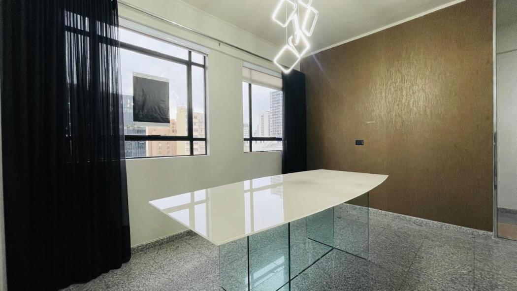 OPORTUNIDADE! CONJUNTO/SALA COMERCIAL PARA VENDA NO CENTRO DE CURITIBA.RUA MARECHAL DEODORO.857Andar Alto. 10º ANDAR - face norte.Área privativa 47,39m².Localização privilegiada no Centro Curitiba, Vista definida para Capela Santa Maria. FACE NORTE.- Sala com dois ambientes AMPLOS, divisórias de vidro (sala de reunião)- Cozinha com armários;- Piso Granito; - Com divisórias de vidro; - Ar-condicionado;- Banheiro social com piso em granito;- Condomínio com circuito interno;Obs: ENCONTRA-SE LOCADO