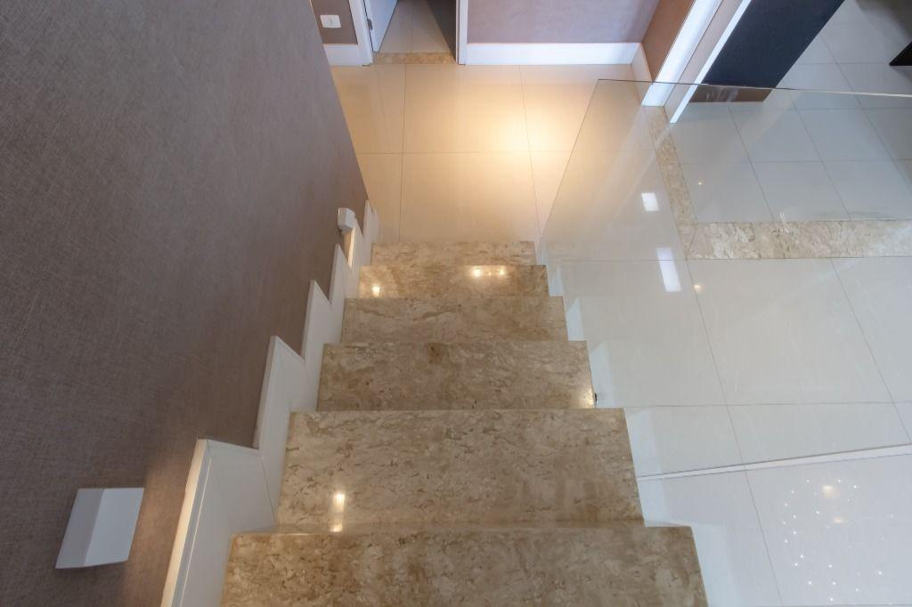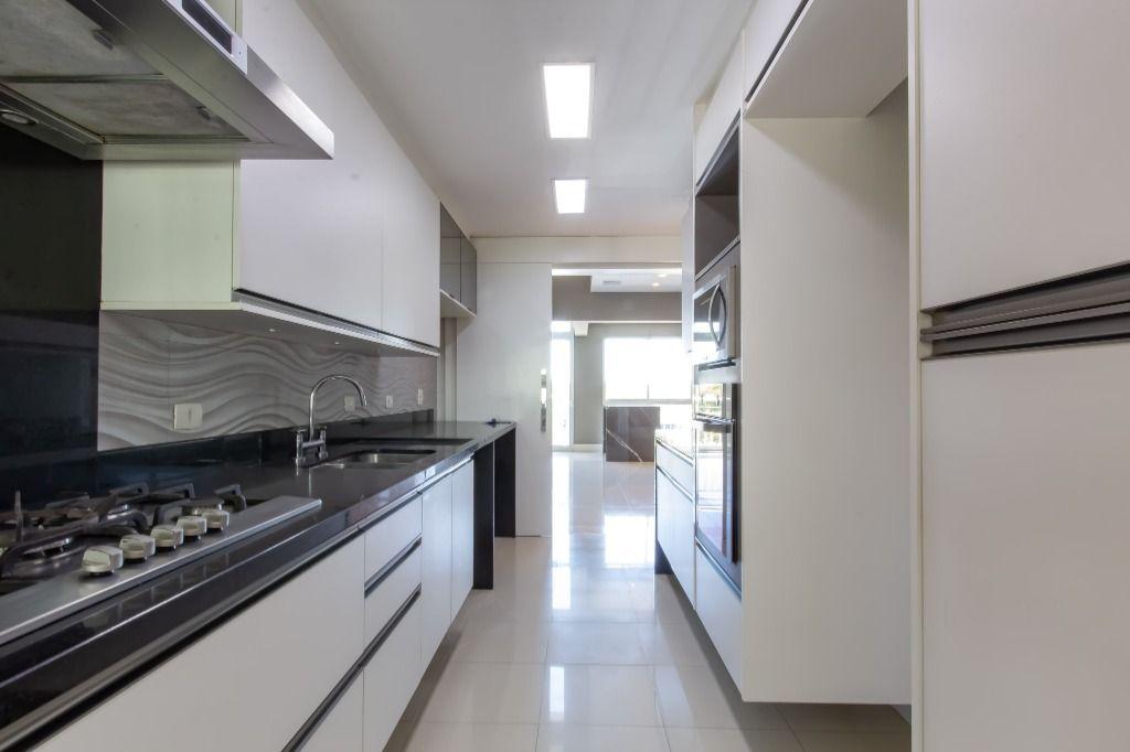 A planta é incrível, e você encontra: sala para 3 ambientes (com pé direito duplo); gourmet com churrasqueira; lavabo; ampla cozinha toda equipada (com marcenaria e eletro); área de serviço; dependência de empregados completa; 4 quartos (sendo 2 suítes) e 3 vagas de garagem!