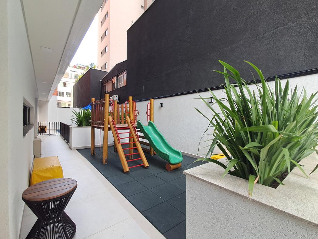 Apartamento 2 quartos tendo sacada com churrasqueira.