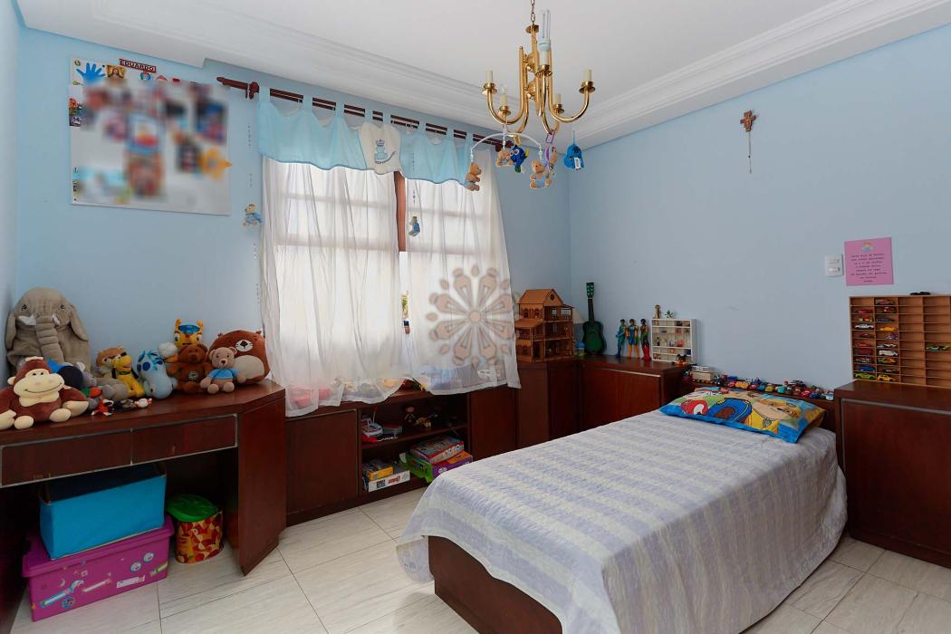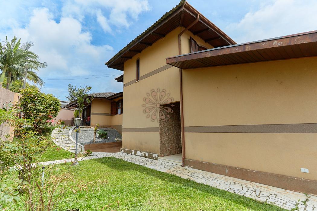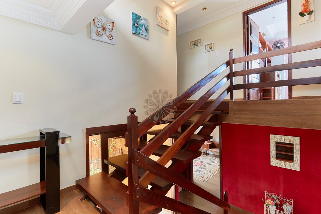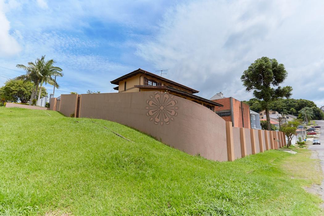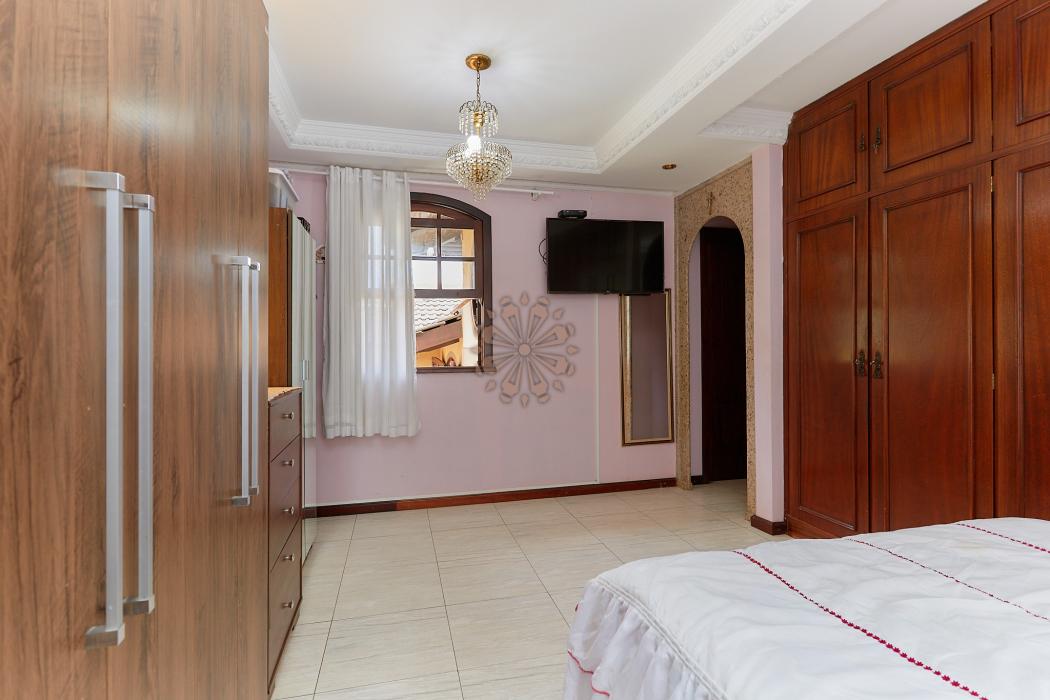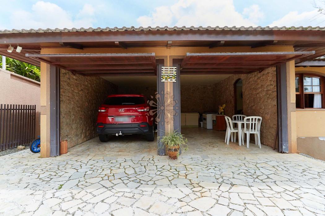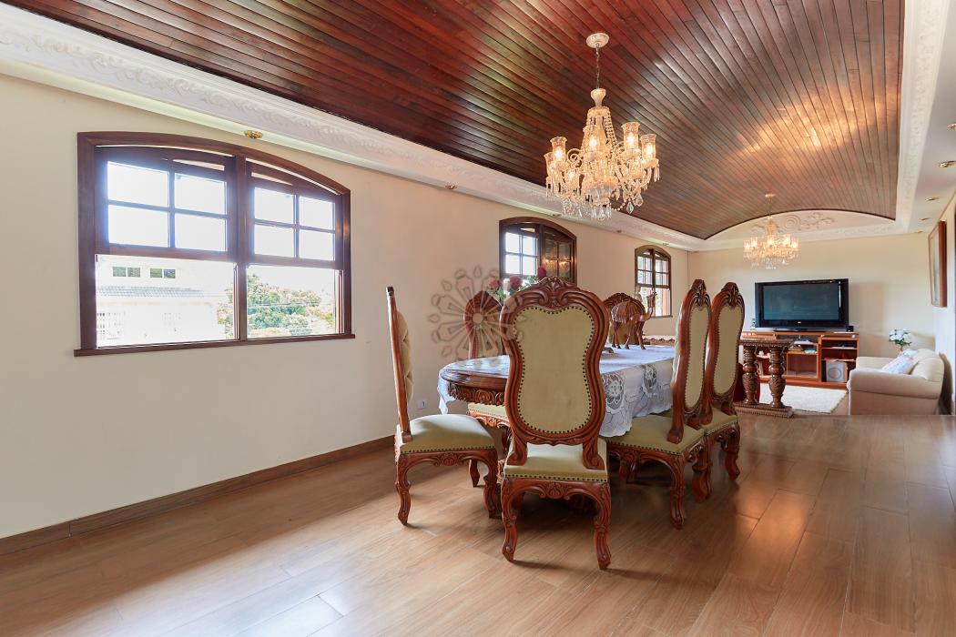 A residência possui 268,71 m² averbados e conta com sala de estar e jantar em desnível, bar ou adega, sala de TV, escritório, varanda e banheiro social. Na área íntima, dispõe de quatro dormitórios com armários planejados, sendo uma suíte com banheira de hidromassagem. A cozinha é planejada e integrada à copa, contando também com despensa e lavanderia. Na parte externa, há churrasqueira e canil.