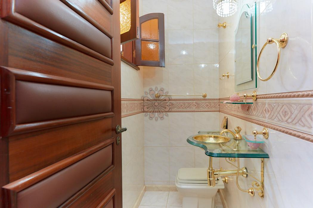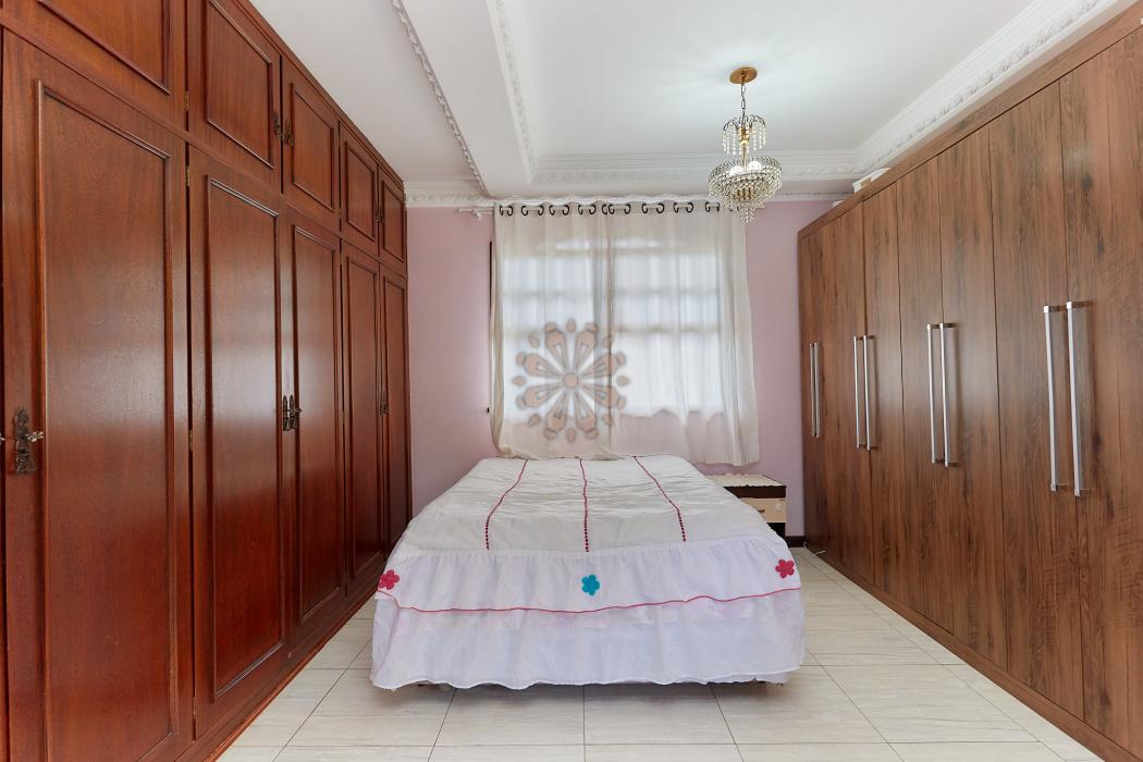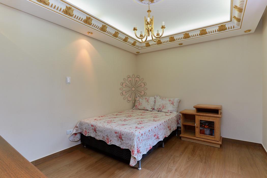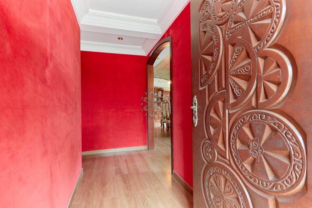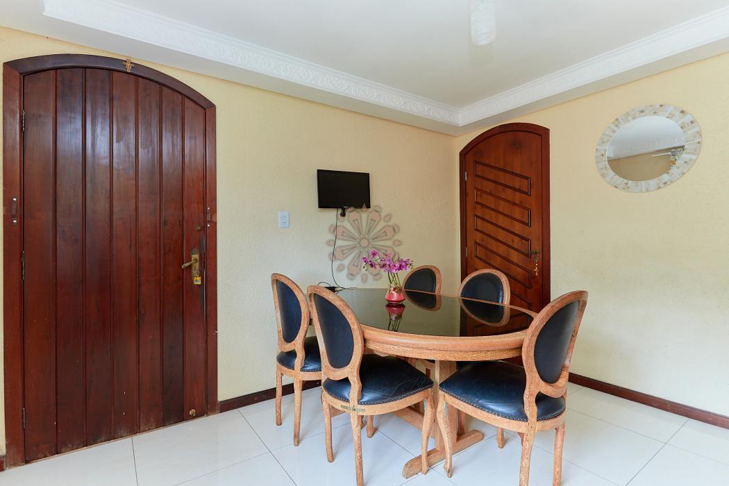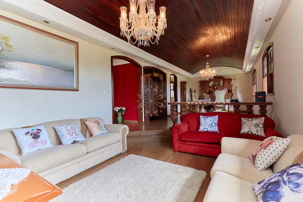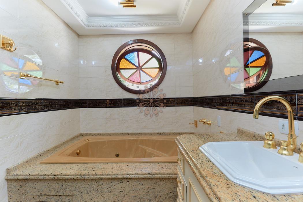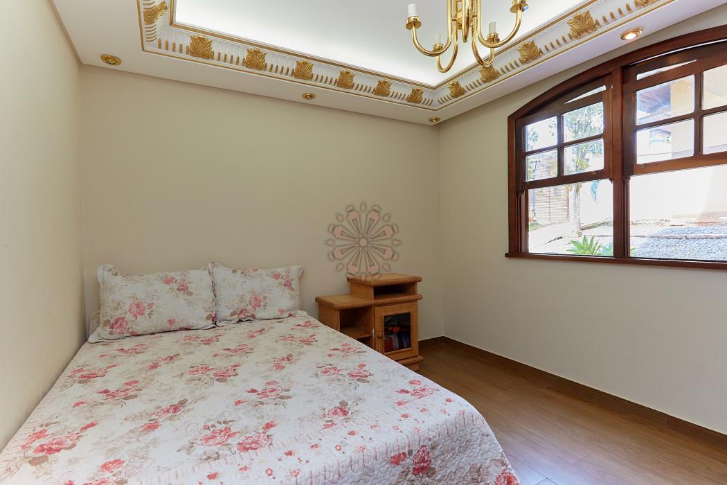 A residência possui 268,71 m² averbados e conta com sala de estar e jantar em desnível, bar ou adega, sala de TV, escritório, varanda e banheiro social. Na área íntima, dispõe de quatro dormitórios com armários planejados, sendo uma suíte com banheira de hidromassagem. A cozinha é planejada e integrada à copa, contando também com despensa e lavanderia. Na parte externa, há churrasqueira e canil.