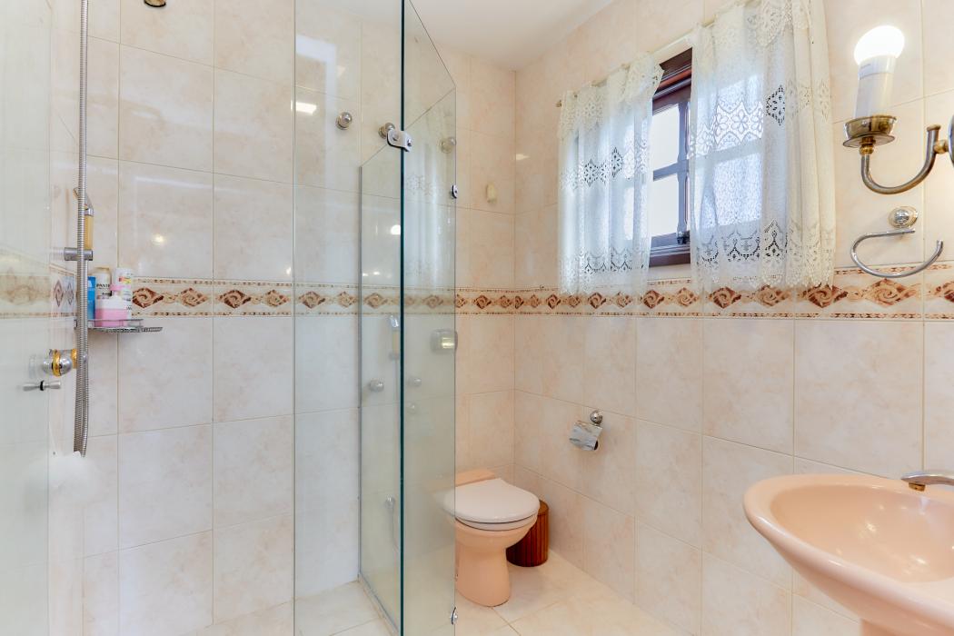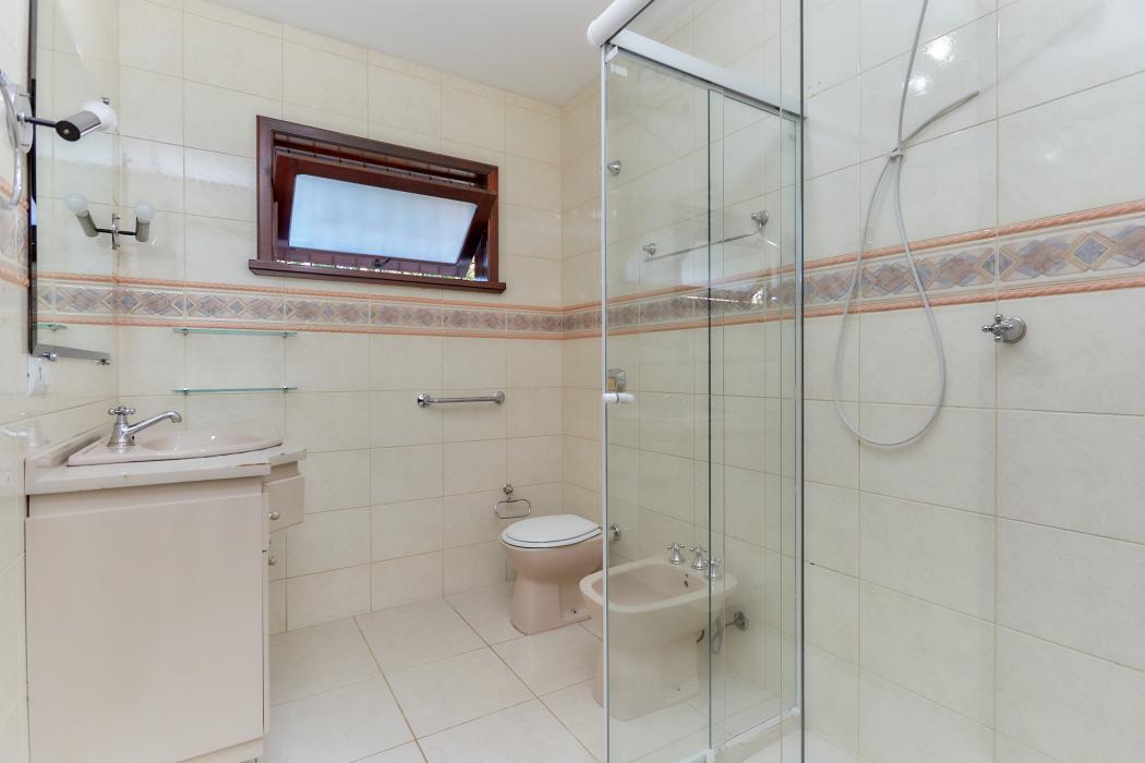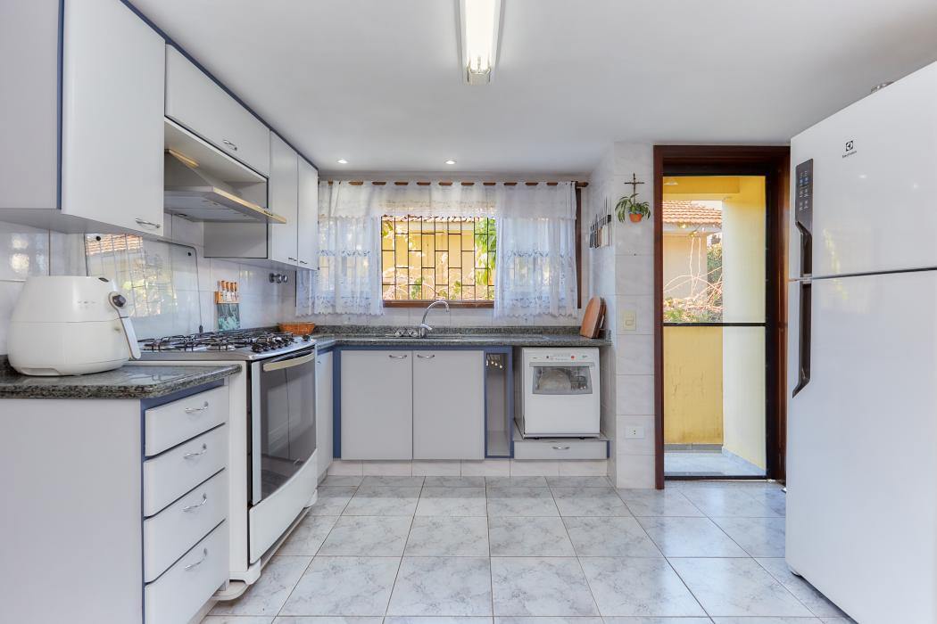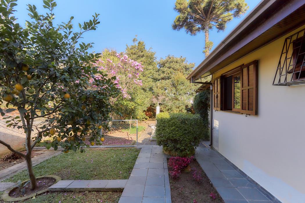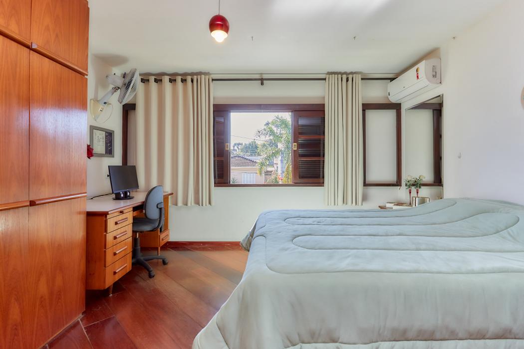 A casa principal é um sobrado com 198 m², face norte, muito ensolarada, com três quartos, sendo uma suíte ampla com ar-condicionado. As salas são integradas e contam com lareira, sacada e lavabo. A cozinha possui despensa e lavanderia, além de garagem coberta para dois carros e sistema de alarme monitorado.