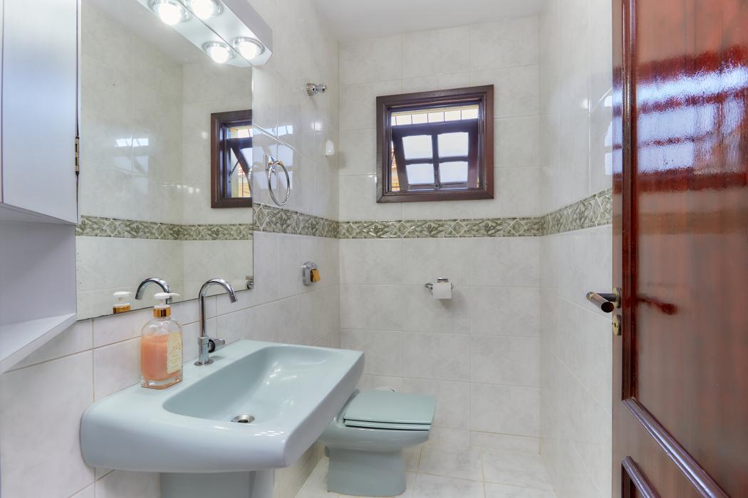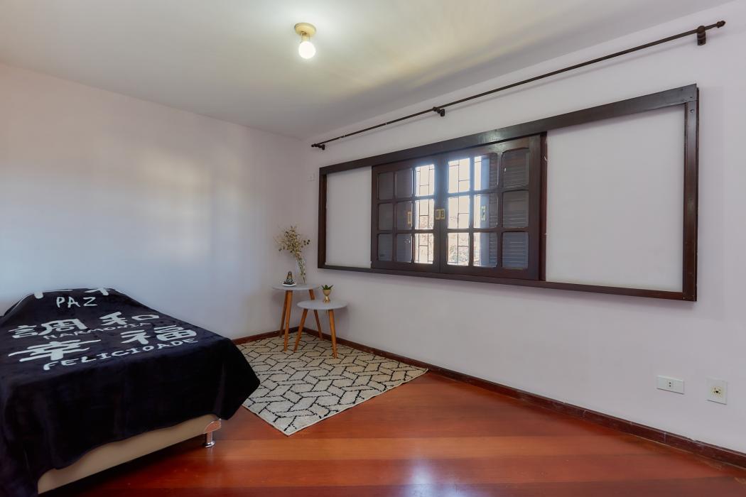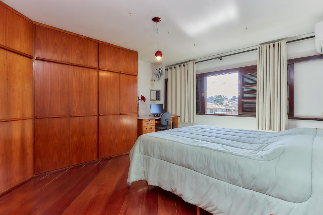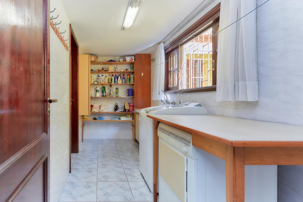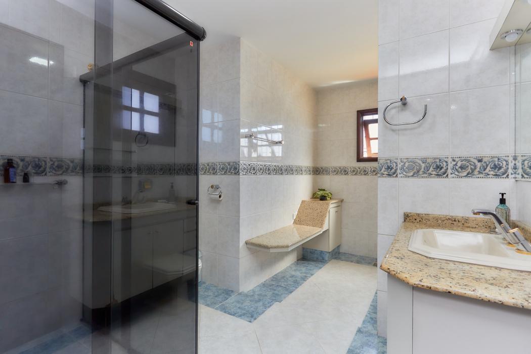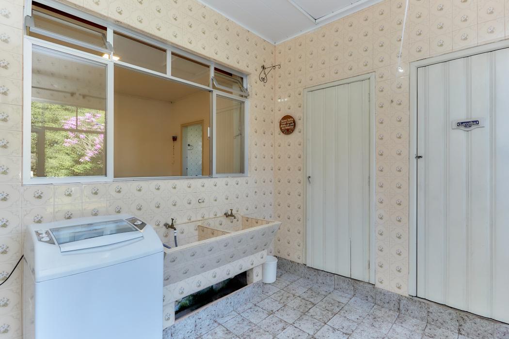 A casa principal é um sobrado com 198 m², face norte, muito ensolarada, com três quartos, sendo uma suíte ampla com ar-condicionado. As salas são integradas e contam com lareira, sacada e lavabo. A cozinha possui despensa e lavanderia, além de garagem coberta para dois carros e sistema de alarme monitorado.