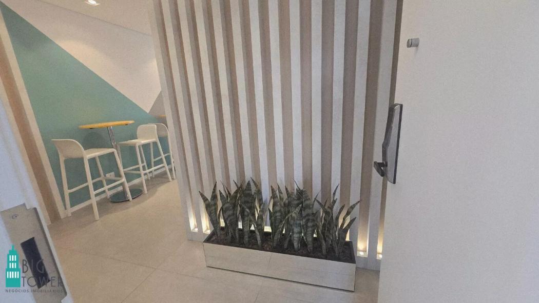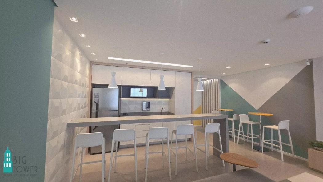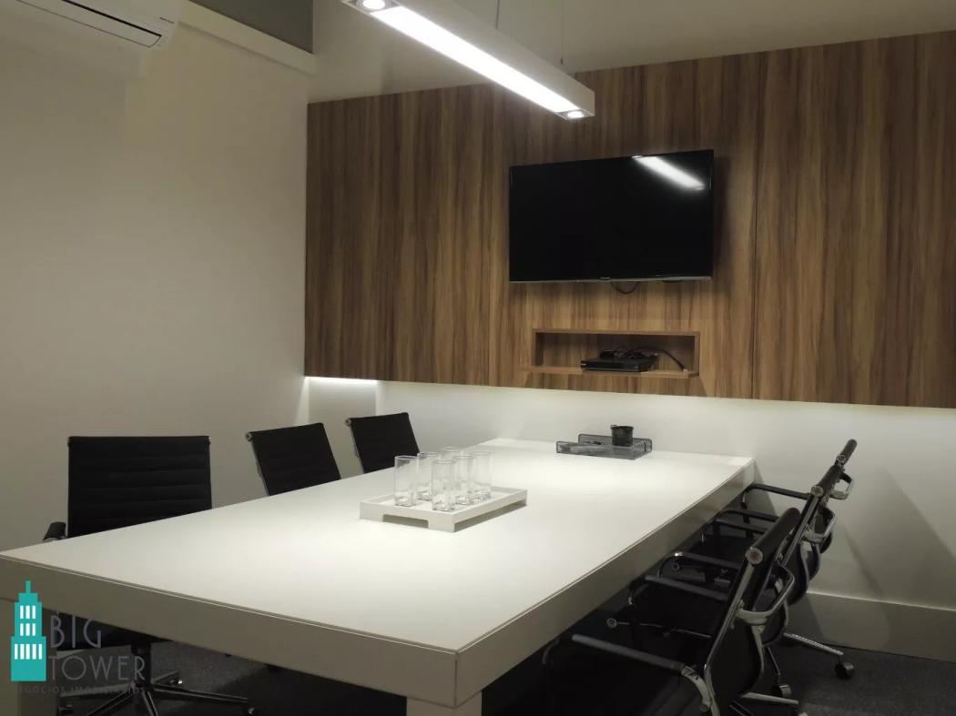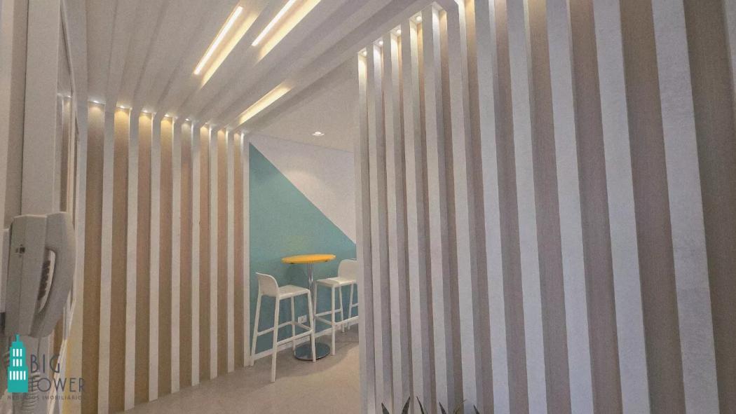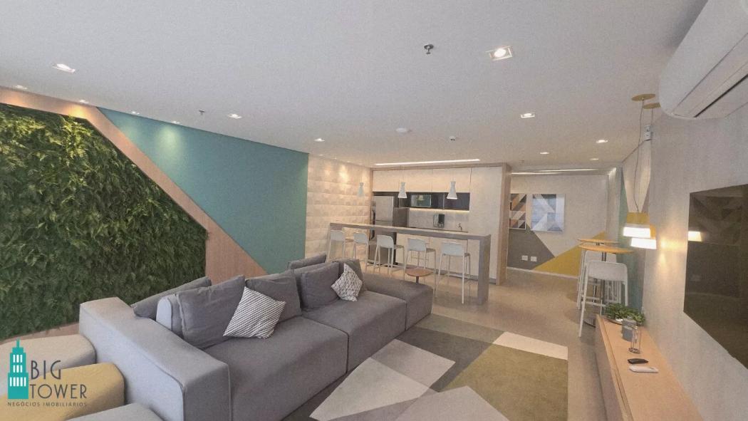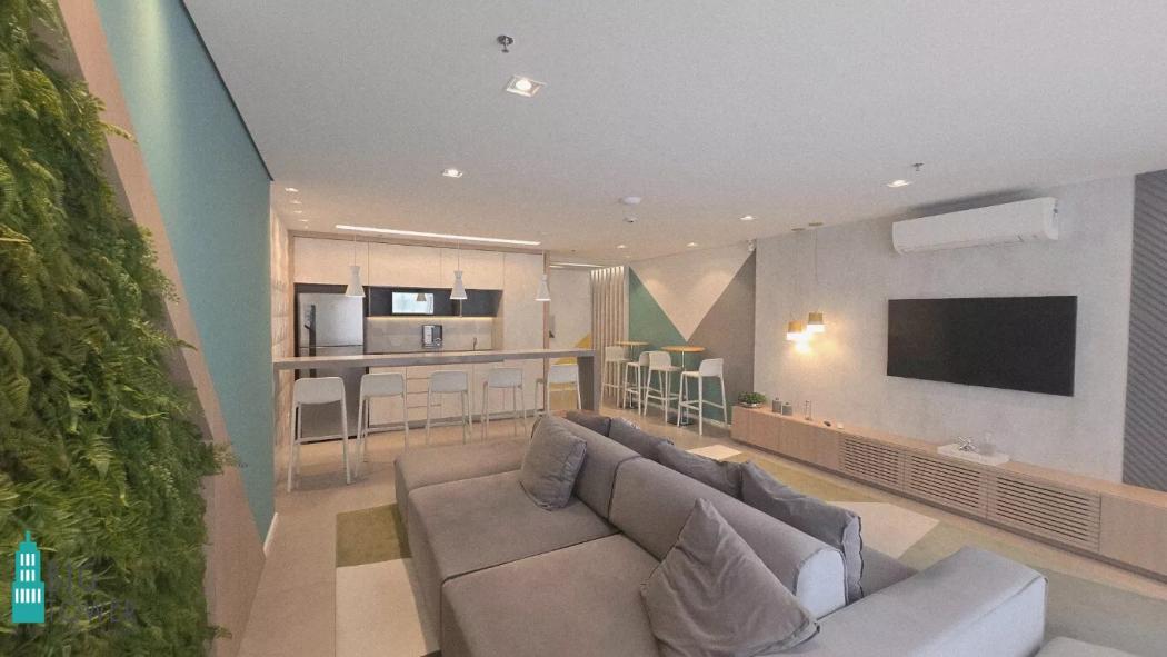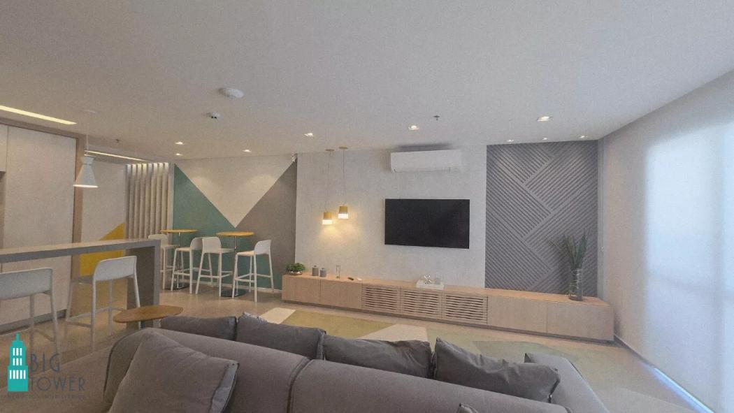 - Sala de Trabalho Espaçosa: Sofá confortável para momentos de descanso e painel de TV para entretenimento ou reuniões.