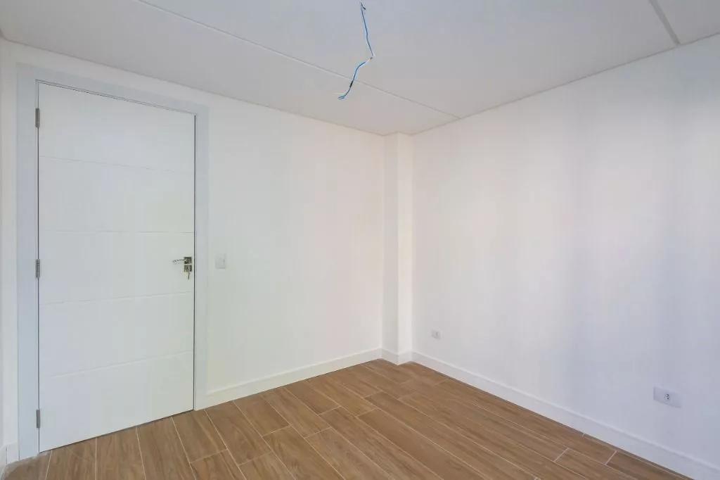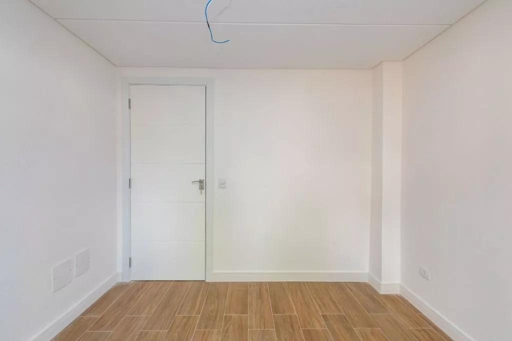 Piso quartos laminados padrão madeira e rodapé cor branca.