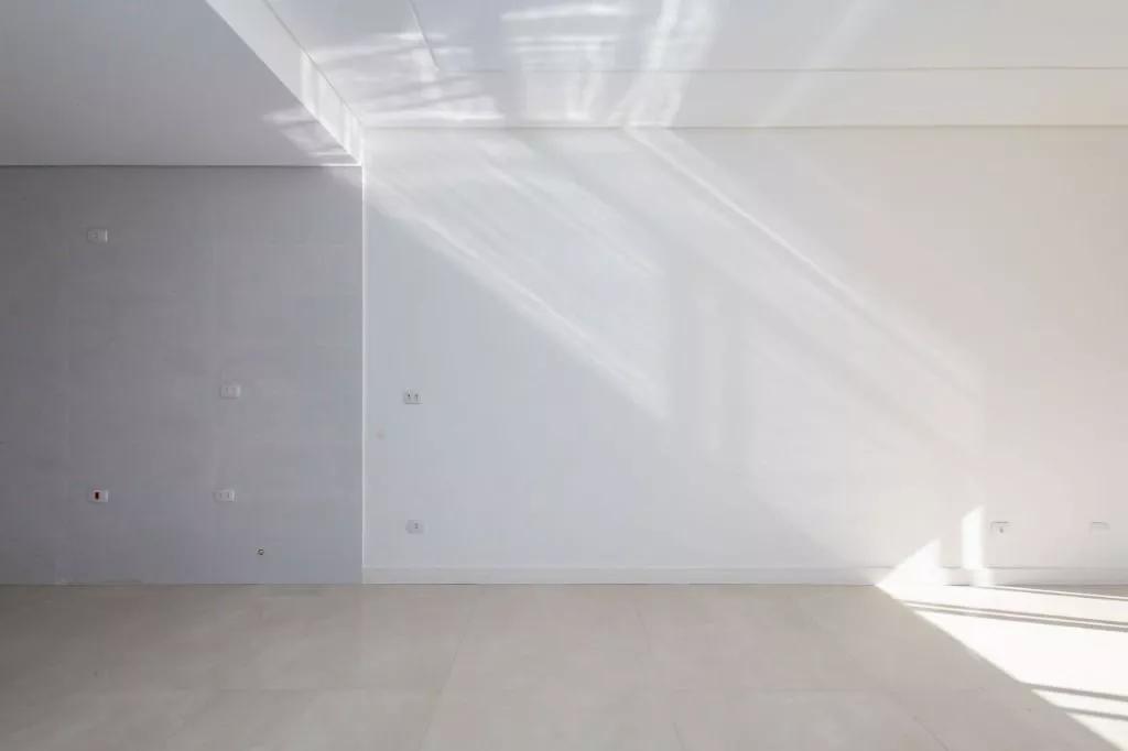 Acabamento das paredes internas na cor branca.