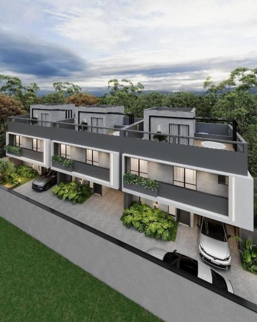 Sobrado Novo em condomínio c/ fino acabamento, arquitetura moderna, bem ensolarado e ventilado, medindo aprox. 120,64m² de área construída em excelente localização na Rua São Judas Tadeu, 192 Capão Raso - Curitiba/Pr. (Estuda-se imóvel ou veículos como parte de pagamento).
