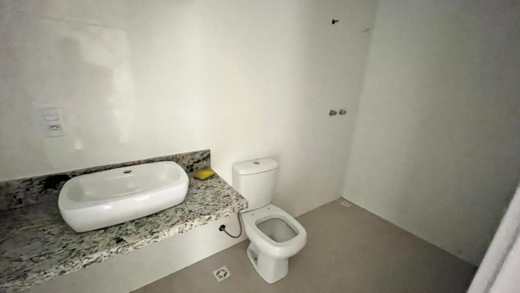 Banheiro social, da suíte e lavabo com pia de granito.