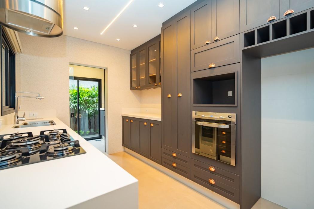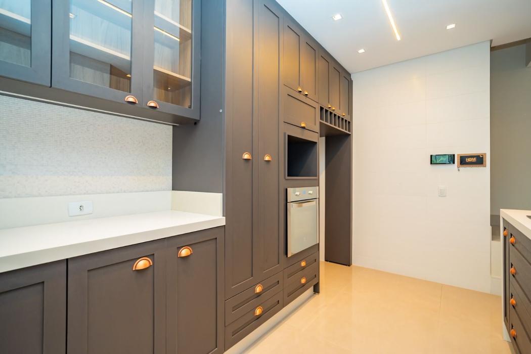 Cozinha americana integrada às áreas sociais, trazendo modernidade e funcionalidade.