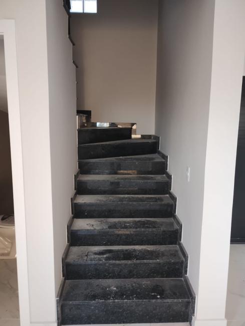 O projeto privilegia materiais nobres e soluções funcionais. As escadas em granito Verde Labrador trazem imponência e durabilidade, enquanto o piso em porcelanato garante elegância, conforto térmico e praticidade em todos os ambientes. O aquecimento a gás atende cozinha e banheiros, com opção elétrica, oferecendo eficiência e flexibilidade no uso diário.