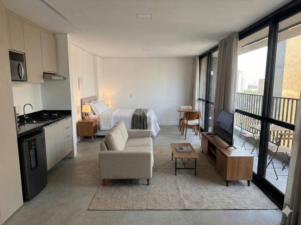 No coração do Batel, um studio que traduz um novo jeito de viver: contemporâneo, funcional e conectado ao que a cidade oferece de melhor. Um projeto que valoriza luz natural, integração dos espaços e bem-estar, em um dos endereços mais desejados de Curitiba.