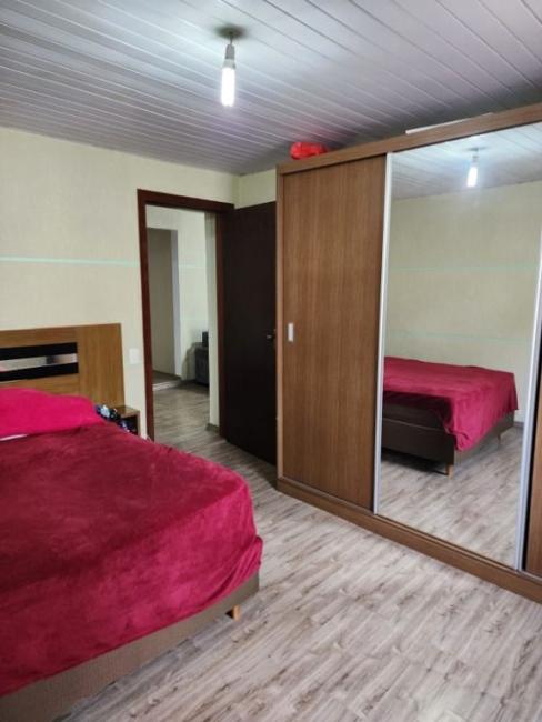 Para a RUA GUSTAV HERMANN STROBEL possui 16 metros de testada, a casa possui um quintal, vaga de garagem descoberta, sala, cozinha, 3 quartos, 1 banheiro social e lavanderia.Estuda-se proposta formalizada para imovel de menor valor.Casas não averbadas, não permite financiamento bancário.